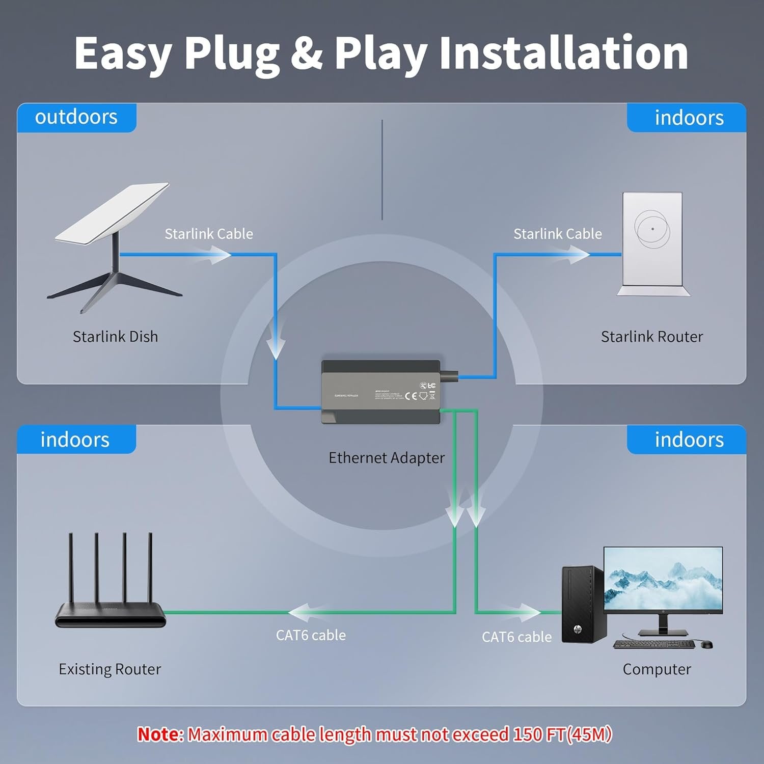 Starlink Ethernet Adapter for Starlink Standard Actuated Gen 2 Wired External Network