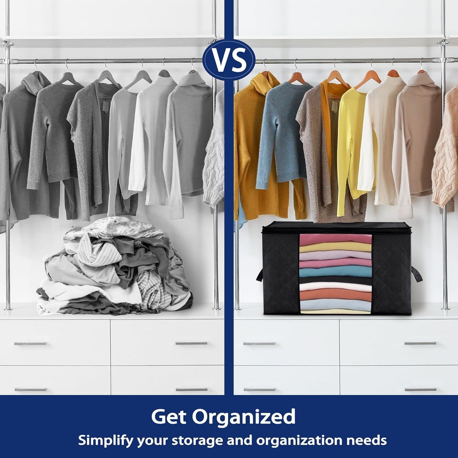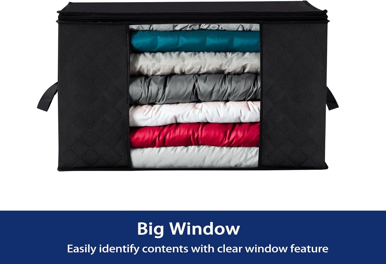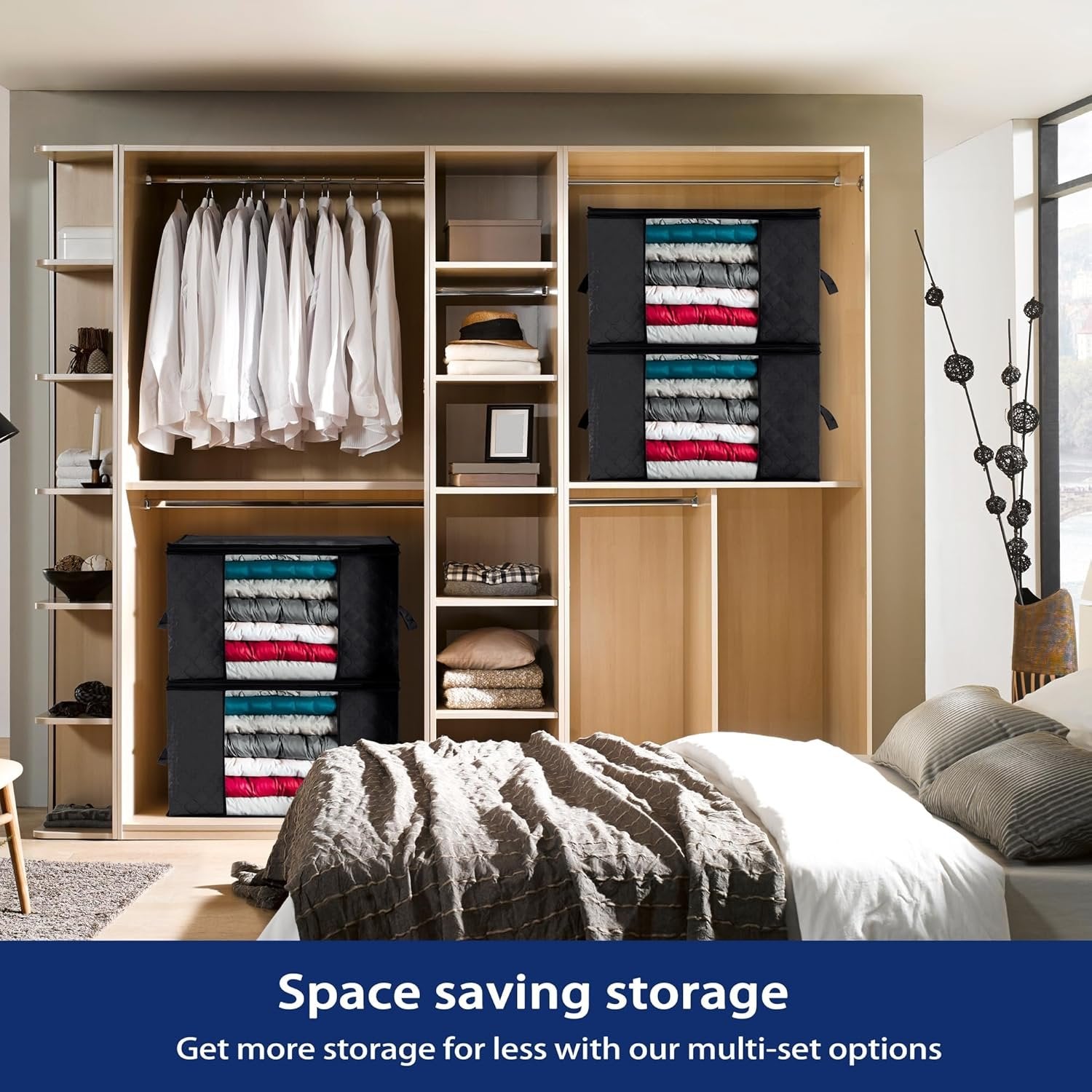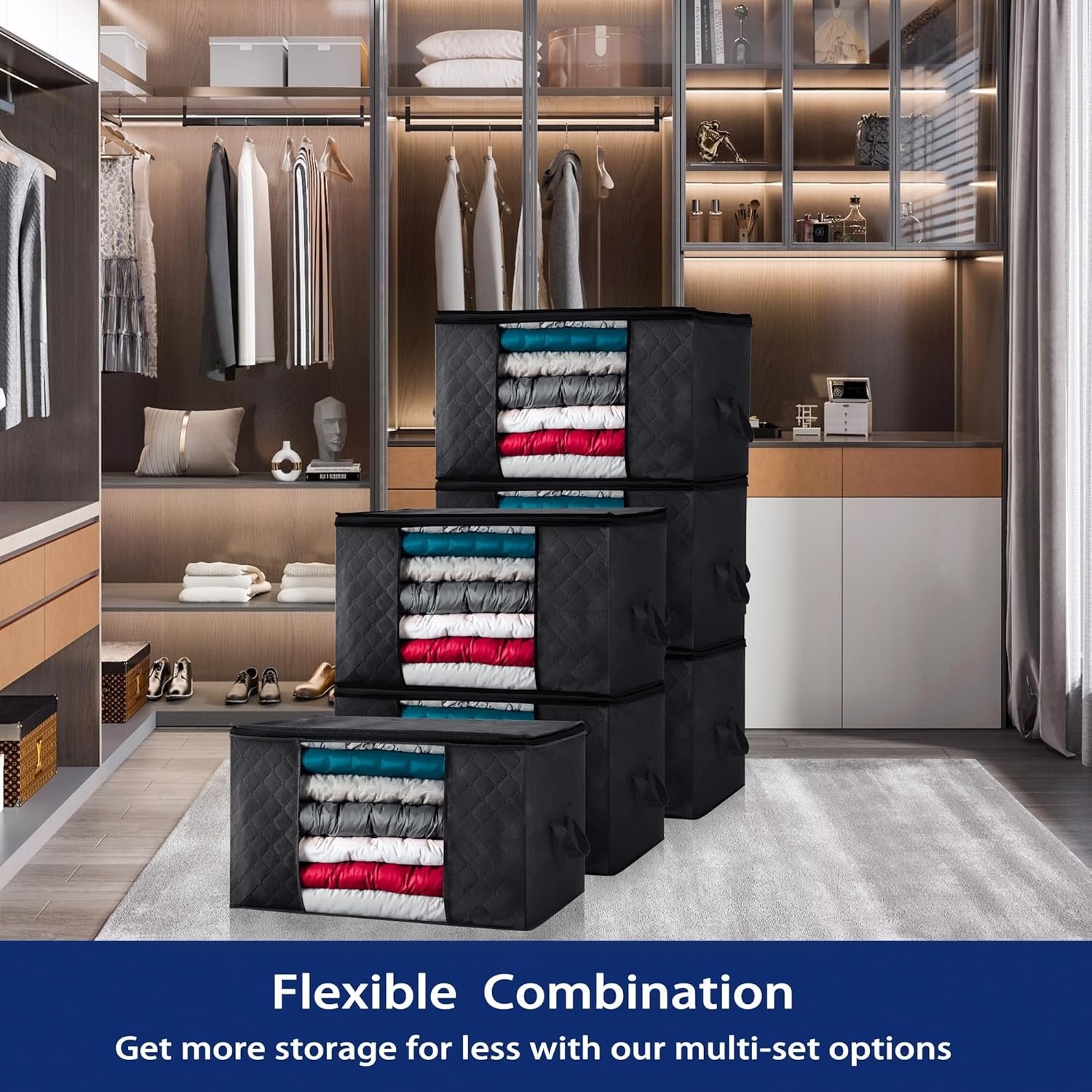 Storage-Bags-for-Clothes Bedding Storage Containers with Zipper Lids, Closet Collapsible Clothing Bins for Linen Blanket, 6 Pack, 90L, Black