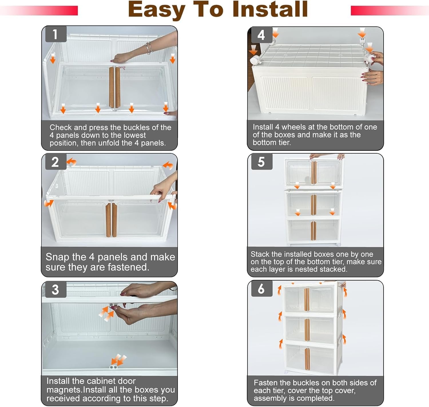 【Multi-purpose Plastic Storage Box】The storage bins with lids perfectly organize makeup, skincare, jewelry, towels, or kitchen spices while adding chic pastel flair to bathrooms, bedrooms, and vanity corners. Ideal for modern women craving Instagram-worthy organization. 【Dual-access & Dust Proof & Visible Design】Retrieve items from this storage bins instantly via the magnetic-secured front door or lift the top lid for full visibility. Dust-proof seals protect delicate lingerie, luxury candles, or heirloom fabrics. Transparent side panels let you spot contents at a glance – no chaotic digging through stacked layers! 【Space Saving & Decor Upgrades Storage Box】vertical stackability transforms cramped spaces into boutique-style displays. Securely hold shoes, handbags, or seasonal sweaters without collapse risks. Collapse bins flat as pancakes when unused – stores discreetly under beds or behind doors. The modern design of the storage bins transform mundane organization into a style statement. 【Movable & Wheels Lockable 】Heavy-duty plastic withstands humidity in steamy bathrooms and resists kitchen grease stains. Reinforced corners prevent warping, while rounded edges for safety. Includes non-slip wheel locks – glide bins effortlessly from closet to laundry room, then stabilize instantly. 【An Ideal Choice for Self-use and Gift-giving】This closet organizers and storage set shines as both a practical lifesaver and a lifestyle upgrade. Whether treating yourself to a clutter-free bedroom sanctuary or surprising a friend with the ultimate housewarming/Christmas/birthday essential.
