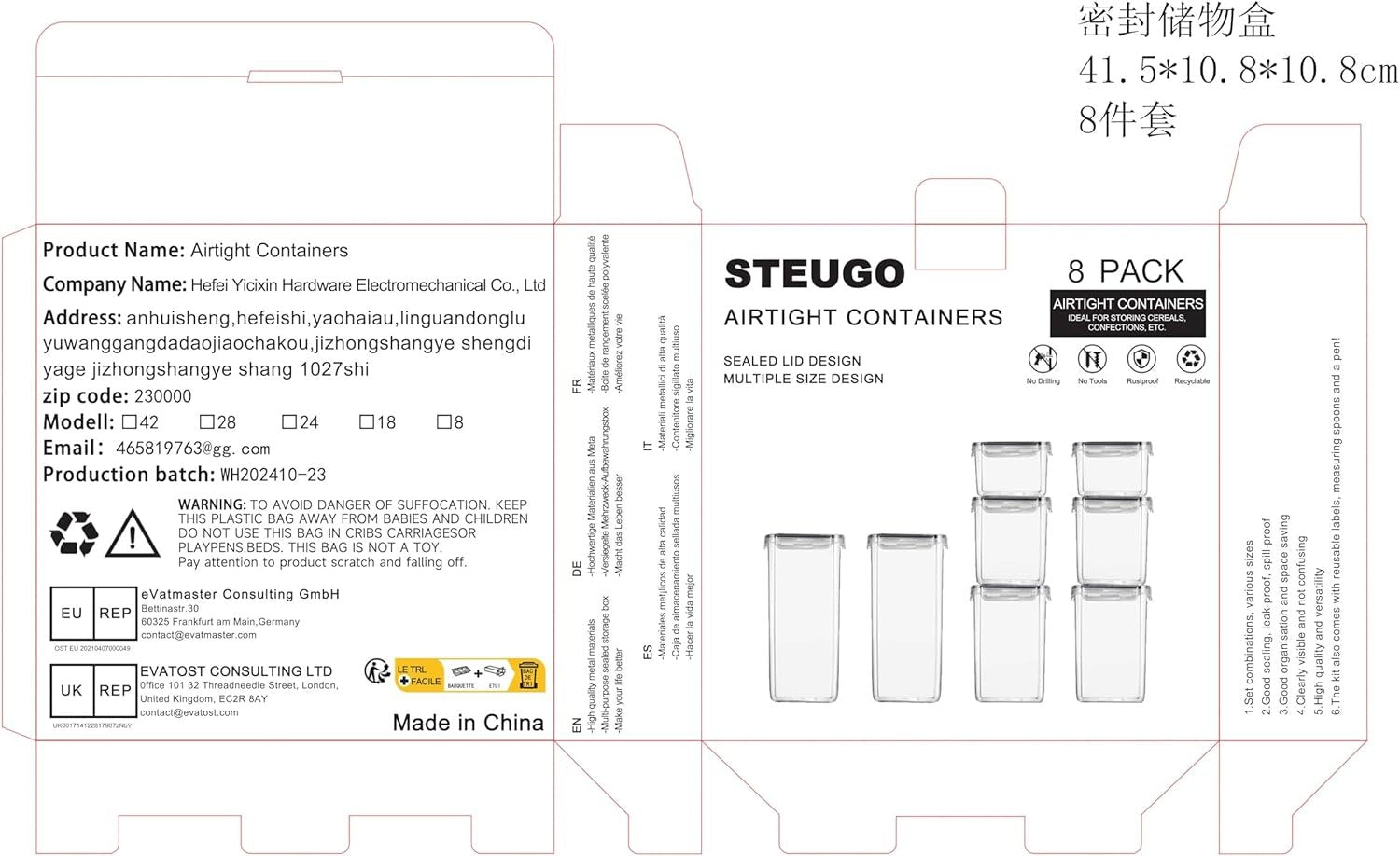 🌻Set Combination, Multiple Sizes--- This airtight food storage containers comes with 18 containers, they are inlaid together, so at first glance you may think there is only the same size, but when you take it apart, you will find five different sizes(Include 2Pcs0.8L+2Pcs1.4L+2Pcs2.0L+2Pcs 2.8L ). Extra(One Pen + Stickers Labels + A set of spoons). Perfect for storing flour, sugar, spaghetti, rice, nuts, cereal, snacks, pasta, and more. 🌻Good Sealing, Leak-Proof and Spill-Proof--- These flour and sugar containers are equipped with a silicone sealing strip and four locking lids, Such a specific design helps preserve and keep the contents of the container fresh.The lids are covered with silicone rubber and add a snap-lock system to ensure that water and air cannot enter it, So as to better ensure the freshness and health of the ingredients in the clear storage containers for organizing and make the food very dry. 🌻Good Organization and Space Saving--- These plastic storage container are usually well-designed and can be stacked to save more space. Cereal containers storage set will use every inch of space in your kitchen pantry cabinets more efficiently, every time you walk to your kitchen or pantry and find that everything is neat and no longer cluttered, you can get everything you want very quickly. 🌻High Quality & Multipurpose--- Stusgo pantry organiser with Lid is made of high quality plastic material that will not seep into your food you can use with confidence.. Stusgo airtight food storage containers for pantry set is made of durable plastic to help maintain food hygiene, avoid contact with other materials or foods, and prevent food spoilage. 🌻Reusable Labels, Measuring Spoons and a Pen — Except 18 pcs dry food storage containers, you will also receive some black labelling paper, a set of measuring spoons and a pen. You can write your name on the labelling paper and stick it on the corresponding container for easy access.