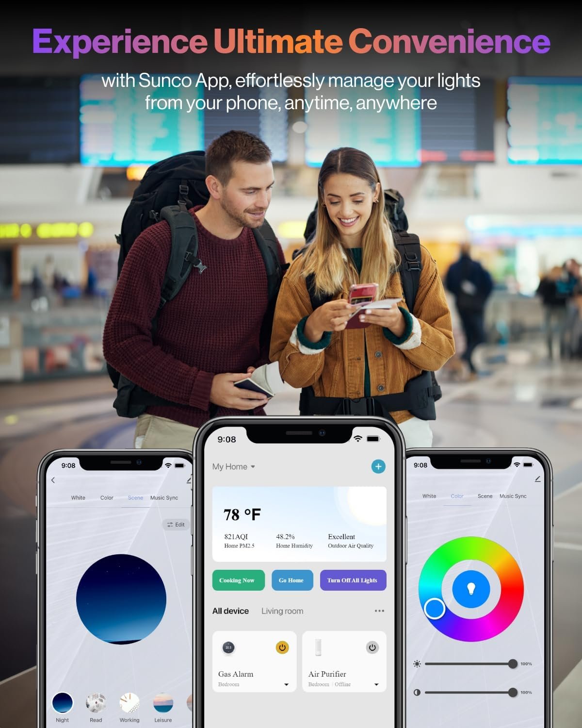 Top-Rated 6" Smart Retrofit LED Downlight ✅ REMOTE CONTROL - Control from your smartphone or tablet with the user-friendly Sunco Smart Lighting app. Connect to Amazon Alexa or Google Assistant for voice control to dim, turn on/off or change colors. Control lights individually or create different groups to control in unison. You can even bump up the beat and atmosphere with Music Sync, which changes color to the beat of your favorite songs. ✅ SIMPLE INSTALL - Follow our installation guide for a quick and easy setup. Directly install retrofit fixture to the ceiling in an existing recessed can for bright light in your kitchen, family room, bedroom, bathroom, and common areas in your home or office. ✅ SUNCO BENEFITS - 7-Year Warranty! We uphold the highest standards for all our products by testing each product for optimal performance and safety. Sunco is proudly based in the USA, offering quality products at affordable prices backed by industry-leading warranties and knowledgeable support specialists.