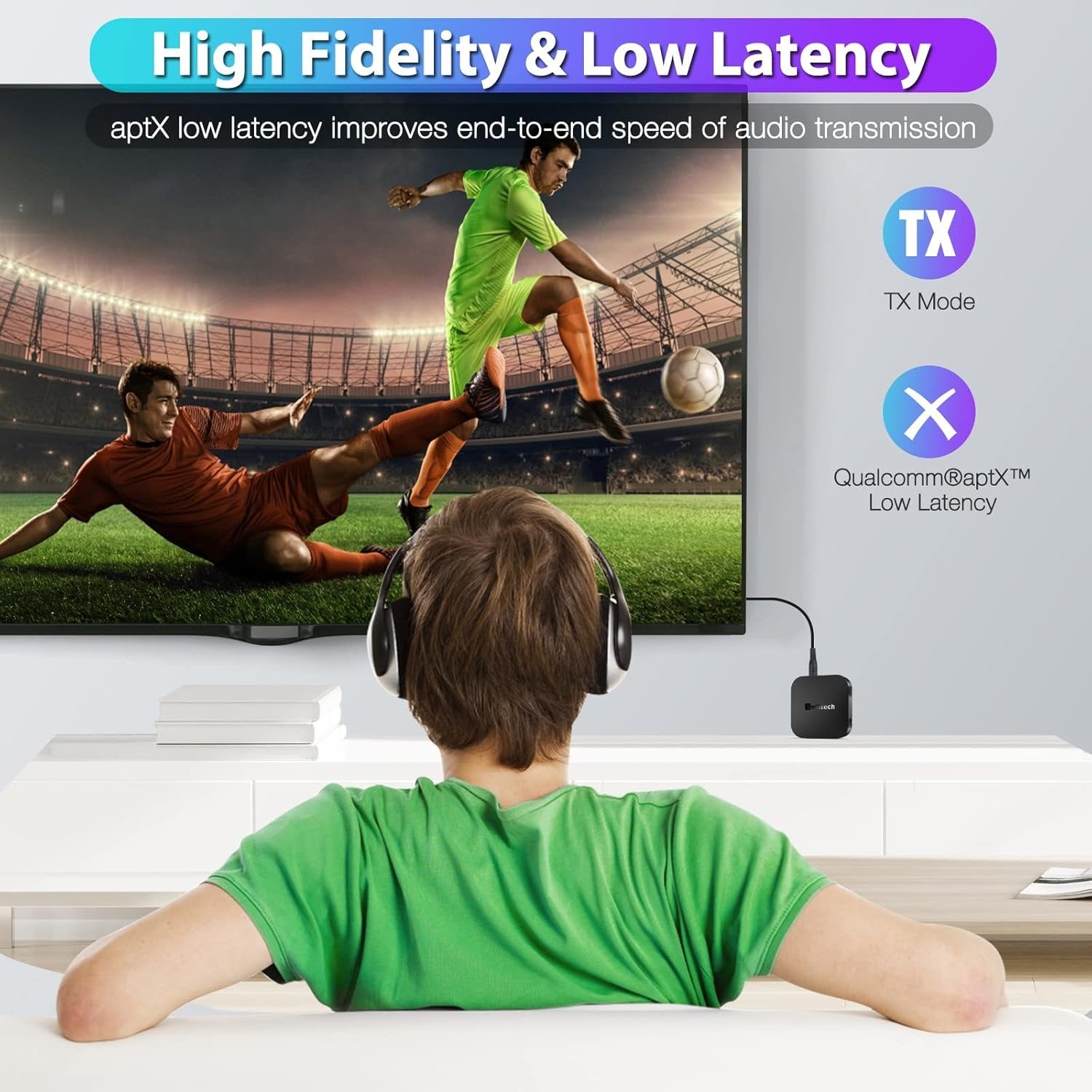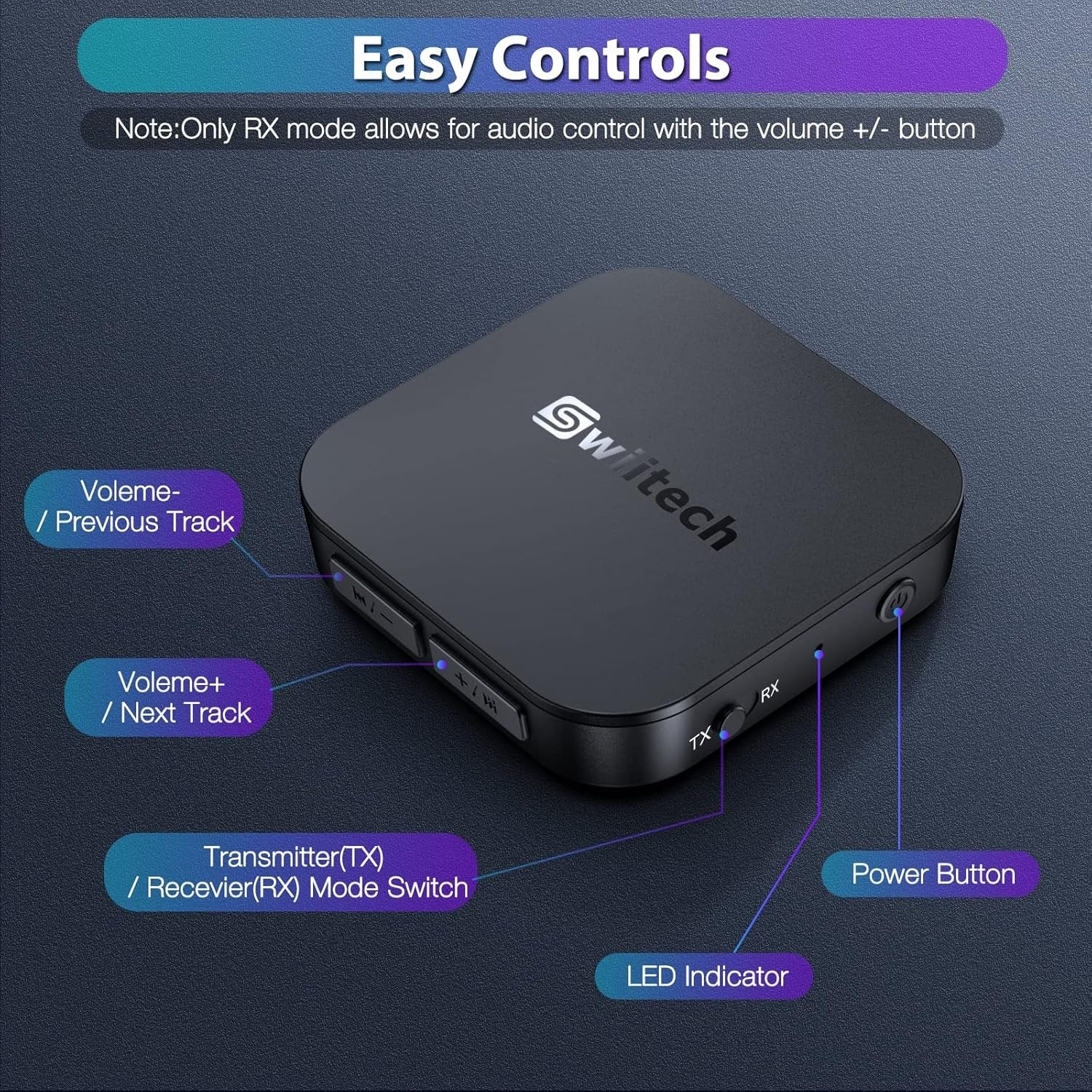 Swiitech Bluetooth Transmitter Receiver, 2-in-1 Bluetooth AUX Adapter, V5.0 Bluetooth Adapter for TV/Car/Speaker/Home Stereo/PC, Pairs 2 Devices Simultaneously, aptX Low Latency (TR-01)