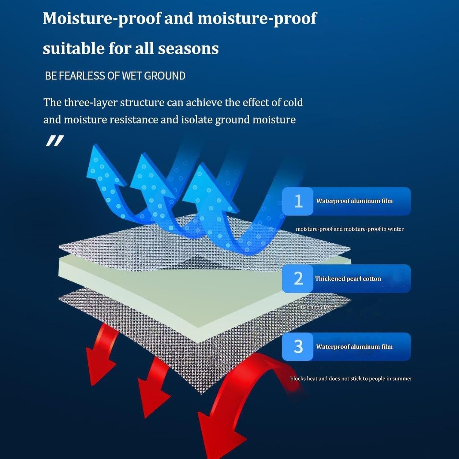 Endurable Materials: With Tent Mat For Camping, your tent floor is shielded from rough outdoor elements due to its double-sided aluminum foil construction that ensures durability. The mat is oil-proof, waterproof, tear-resistant, and abrasion-resistant. Useful and Functional: This tent floor mat, featuring an aluminum film both sides, is equipped with an insulating aluminum foil layer to reflect body heat, ensuring the best temperature cold nights. Enhanced Sleeping Comfort: Stay cozy and protected throughout your camping adventure with this high-quality Tent Mat. It provides great protection against cold and rough ground, ensuring a comfortable sleeping environment. Easy to Carry around: With dimensions of about 195x180 cm / 76.7x70.8 inches, this tent mat for camping is suitable for multiple people and foldable for effortless transportation. Wide Range of Uses: Enhance your outdoor experience with our Tent Mat For Camping, suitable for various activities like backpacking, beach trips, hiking, camping, picnics, and survival scenarios. Made of foam and foil for optimal insulation and comfort.