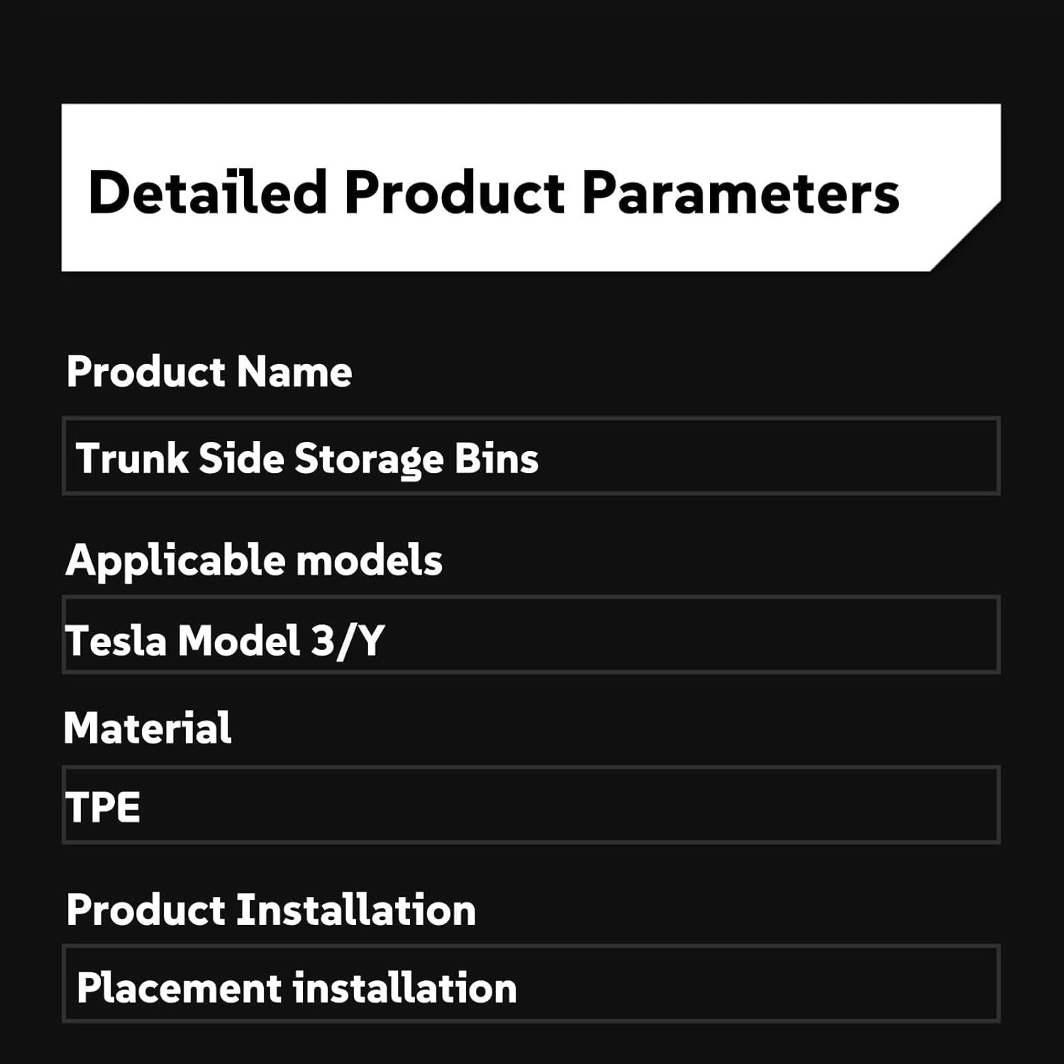 Custom Molding: Perfectly fits the trunk side grooves of the Tesla Model 3 Y. Printed with 1:1 precision, it perfectly matches the original interior without wobbling or making noise. Unlock Hidden Space: Take advantage of unused space on the side of the trunk. Two compartments to easily organize loose items eliminate clutter while maintaining a minimalist aesthetic. Durable Material: Made of TPE material, anti-scratch, abrasion resistant, solid and durable and can be directly connected to the water system. Quick Installation: No drilling or gluing required. Snap Lock/Magic Tape: Easy for anyone to install. Removes cleanly, preserving your car's original interior. Versatile: Quickly hide camping gear, food or pet supplies. Non-slip base prevents spills in the event of sudden stops.