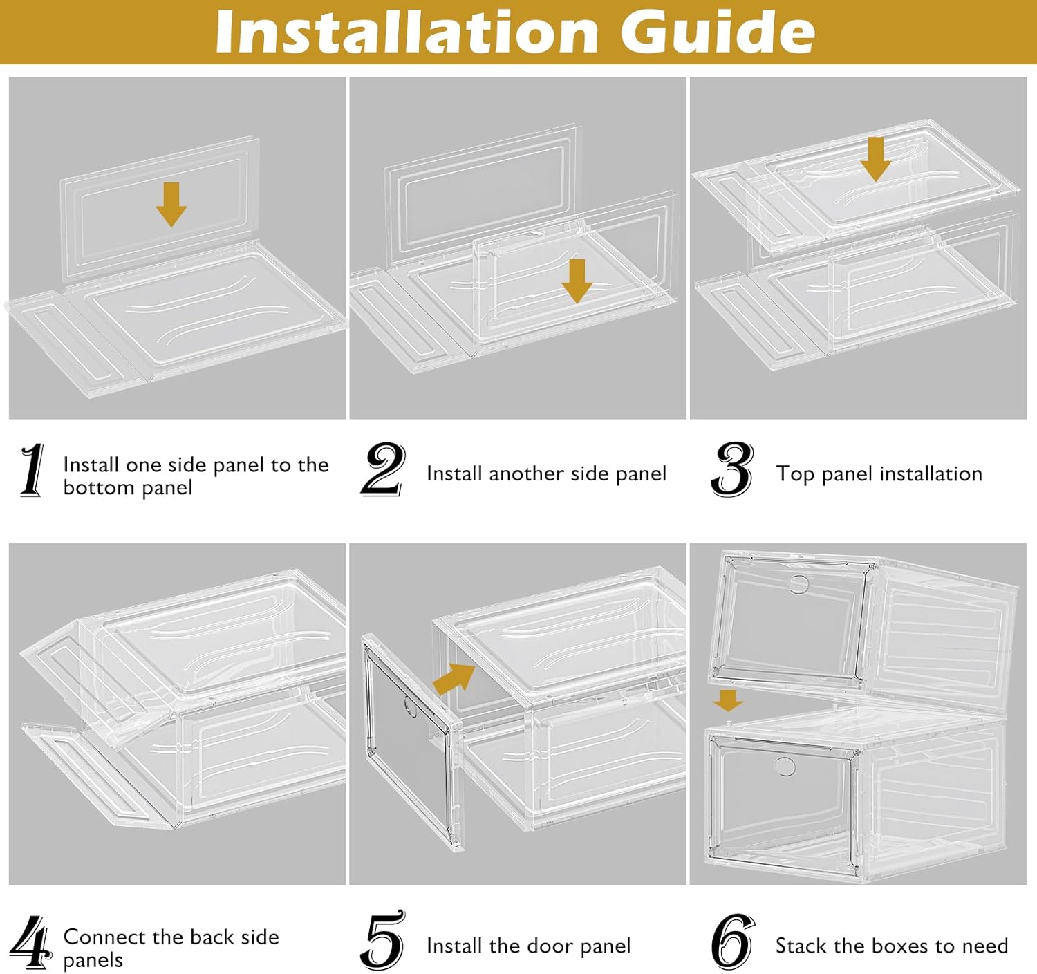 Thicken & Sturdy Clear Shoe Storage Organizer with Magnetic Door, Stackable Boxes for Closet, Foldable Space-Saving Shoe Rack for Sneaker Boot Container, Plastic Shoe Cabinet Shoe Box 6 Pack, White