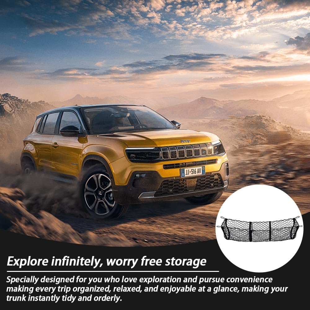 Brand-MOTRAIN Automotive Fit Type-Universal Fit Manufacturer-MOTRAIN - Item Descriptions:Package:1pcs Three Pocket Mesh Storage NetItem Specifications:Color: BlackWidth: 30cm/12 inchesApplication: Car, SUVs, RVs, Buses Adjustable Design for Versatile Fit: The storage net can be easily adjusted to fit most trunks, pickup truck beds, or SUV rear cargo spaces. It expands from 44 to 56 inches in width, with a depth and height of 12 inches each. Stretchable for Extra Storage: This stretchable storage net allows you to expand it to cover the width of your pickup bed or any required area. It stretches around your items, giving you more room to store even larger loads. Clutter-Free Organization: Keep your trunk or storage area neat and organized with this storage net. It holds everything securely in place, featuring three pockets for organizing groceries, tools, gear, and other items. Durable High-Quality Material: Crafted from premium polyester, the storage net is built to last. Its robust construction ensures long-lasting durability and safely secures your cargo in cars, vans, or SUVs. Three Convenient Pockets: The net features three pockets to store groceries, tools, and gear, preventing items from flying around your trunk or hatch. It ensures everything stays in place and reduces the risk of damage to your belongings.