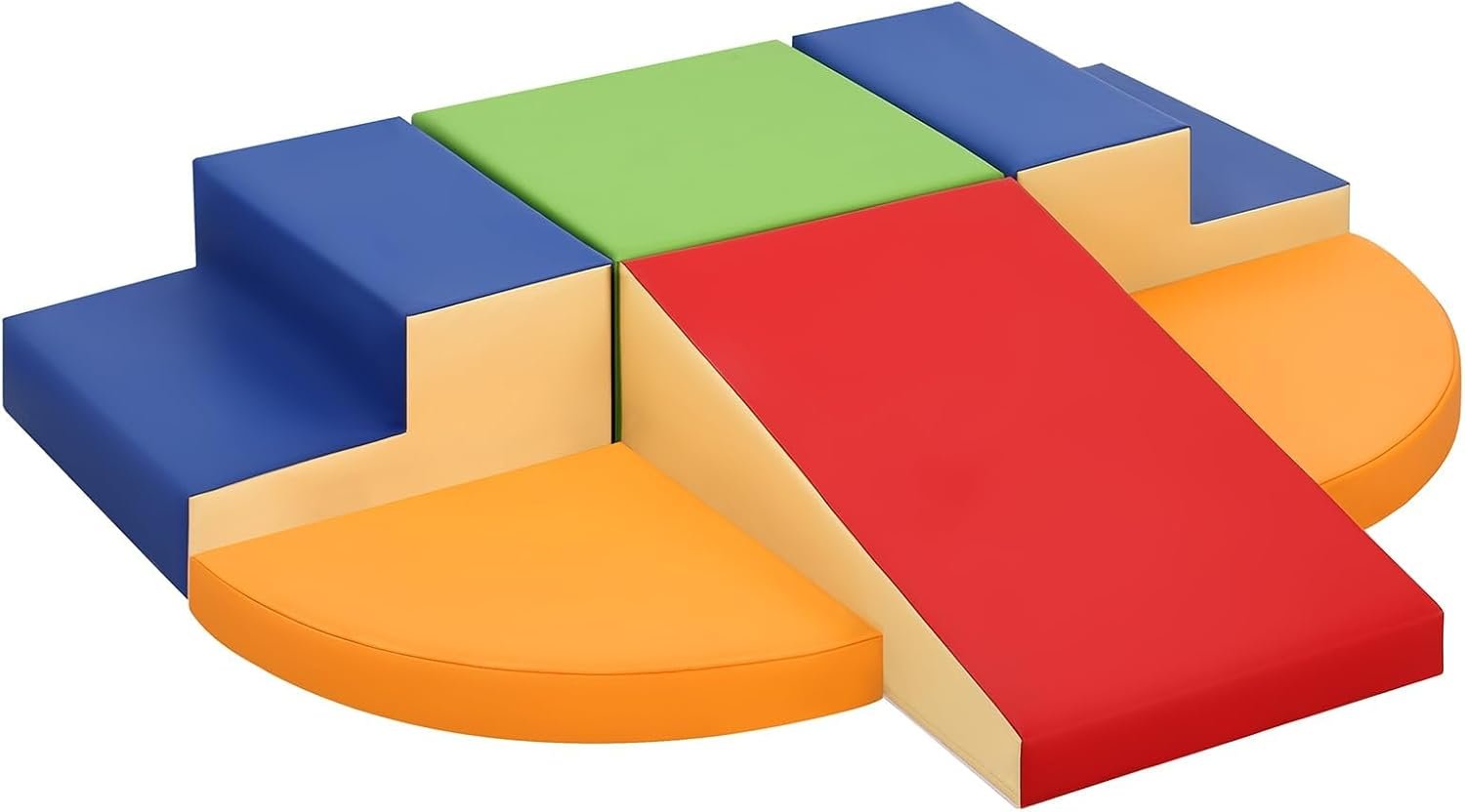 TODIBY 6-Piece Set Soft PU Leather Baby Climbing Toys for Toddlers, Foam Blocks Climber Play Equipment, Indoor Climb and Crawl Activity Play Set (Classic Color)