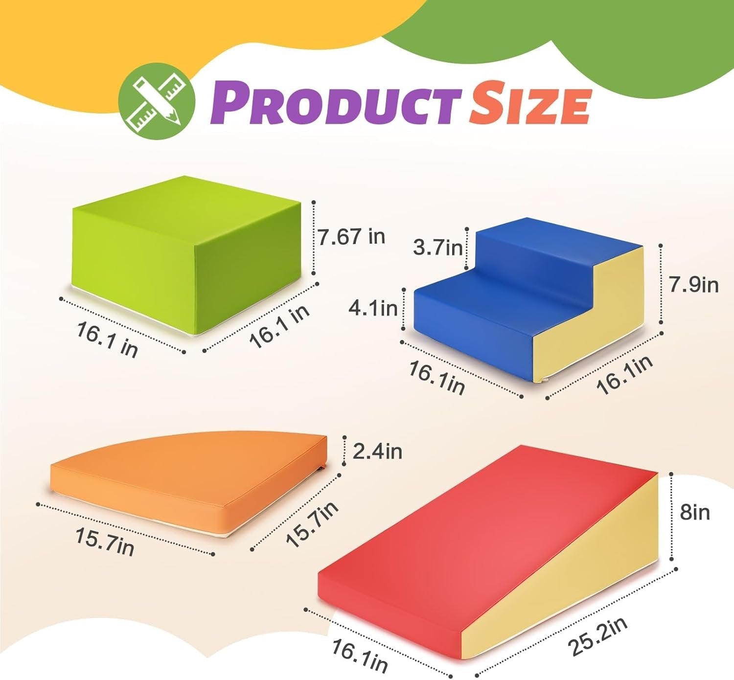 ★ 【Soft Foam & PU Leather】This toddler foam climbing blocks is made of high-quality soft foam and soft PU leather, very easy to clean and maintain. Your child can safely toddler and roll on climbing toys for toddlers’ soft and low impact surface. This is a foam climbing toy that parents can rest assured that their babies are using. ★【Educational Toys】Our children's corner climber toys have a variety of colors on the surface, which can attract children's attention and help them develop their color recognition skills. Toddler can also learn about shapes, sizes, and spatial relationships by stacking, arranging, and manipulating the blocks. ★【Exercise & Development】Foam blocks are easy to assemble and can be rearranged in different configurations to create new play environments. Toddlers can use the blocks to create imaginary worlds, buildings, and structures, stimulating their creativity and imagination. ★【Perfect Birthday Gift】6 Piece soft foam climber play set is specially designed for families, playrooms, nurseries, kindergartens, and preschools to ensure kids safe and fun playtime. This wall climbing foam block set is an ideal birthday gift for babies, toddlers and preschoolers. ★ 【6 PIECE SET】Baby climber corner consists of 2 blue stairs, 2 orange half-moon, 1 green square and 1 red slide. Climbing toys for toddlers allow children to use their imagination, allowing them to stack and exchange four different shapes while climbing up and down and enjoying the fun of the toy.
