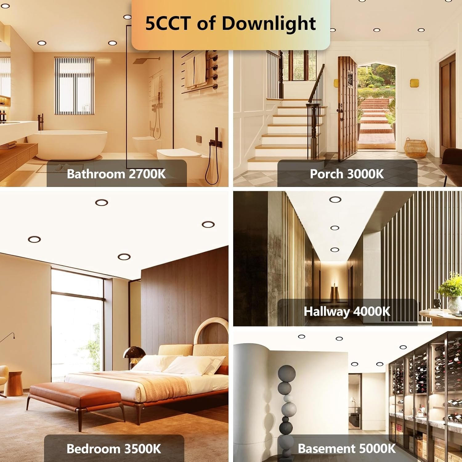 Night Light Feature, 2 in 1 recessed Light - Black pot lights 6 inch with 2000K soft illumination night light, creat a comfortable and relaxing atmosphere. Multi-function: 2 lights in 1, night light + downlight, more features, more experiences. 5 Color Selectable - 2700K 3000K 3500K 4000K 5000K, 5 color changing for black outdoor pot lights 6 inch, suitable to different room and area, more choose in 1 potlights. Choose color you like before installation. Sync & Diammable - Synchronization Reset Function: If the pot light get out of syn, turn off black 6 inch soffit lights outdoor over 8 seconds, the recessed light back to downlight mode. This slim recessed lighting 6 inch can be diammable from 5% to 100% by triac dimmer, no noise and no flickering. Safe to Use, Easy Installation - The black 6 inch outdoor recessed light retrofit with ETL, FCC listed, IC and wet Rate, offer more safety protection and safety. 6” black pot lights is canless design, 4 steps to finished installation. Quick Serivce Respond - Quick After-Sale Serivce & Online Respond for outdoor pot light 6 inch led flat with night light.
