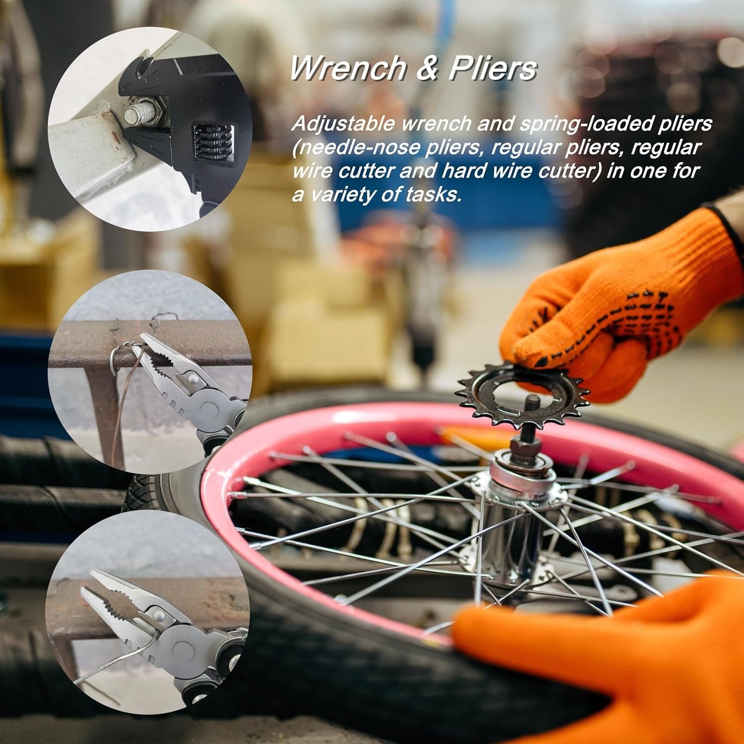 【13 in 1 Hammer Multitool】Tosconve multi tool hammer includes hammer, adjustable wrench, needle-nose pliers, regular pliers, wire cutter(regular wire cutter and hard wire cutter), Phillips screwdriver bits(PH1&PH2, length 80mm&25mm), slotted screwdriver bits(SL, length 80mm&25mm), knife, bottle opener, nail claw, file, whistle and flint(fire starter).Versatility and practicality make it a useful addition to your toolbox. 【Hammer, Wrench & Pliers in One】Hammer, adjustable wrench and pliers in one, allowing them to be used at the same time without the need to carry a heavy toolbox.It's also multitool pliers and multitool wrench. The well-built pliers handles are self-curved shaped for a comfortable and efficient hold.Besides, it comes with a star wrench(T6/T8) to adjust the nuts on the multi-tool for smooth opening and use. 【9PCS Magnetic Screwdriver Bits】Screwdriver bits with a length of 80 mm: SL(3mm, 5mm), PH1(3.0mm), PH2(4.5mm, 5mm, 6mm). Bits with a length of 25 mm: SL(4.5mm), PH1(4.5mm), PH2(5mm). 6 long bits(80mm) are ideal for working in tight or hard-to-reach spaces during home repairs and automotive maintenance.It's also a multi-bit screwdriver & screwdriver multitool! 【Perfect for Outdoor Activities】Versatility and foldable design make the Tosconve multi-tool hammer perfect for outdoor activities (the perfect multi-purpose tool for camping, fishing, emergencies, outdoor survival and hunting).It is also suitable for home and office repairs and DIY! 【A Great Gift Idea】This multi-purpose tool also makes a great birthday, Christmas, Thanksgiving and Father's Day gift for loved ones who love the outdoors!