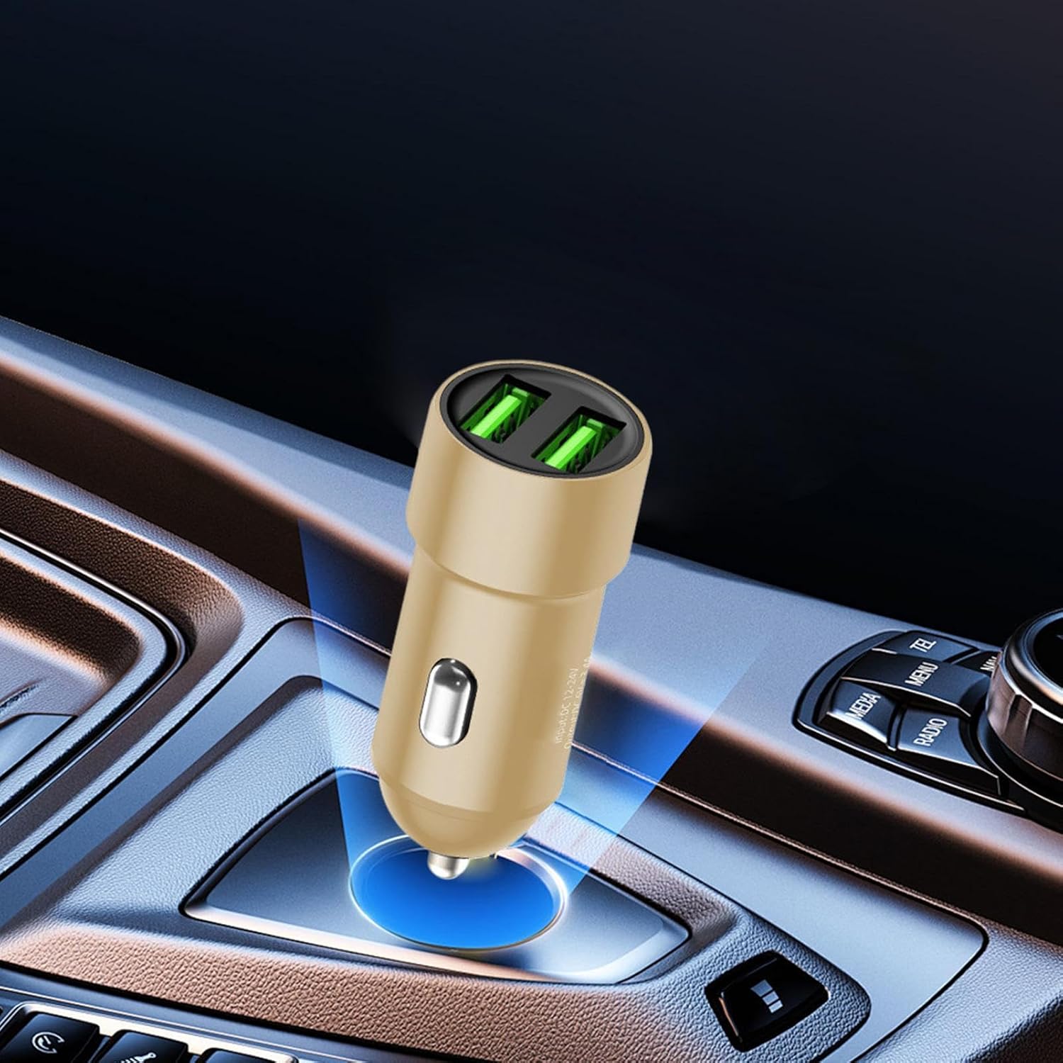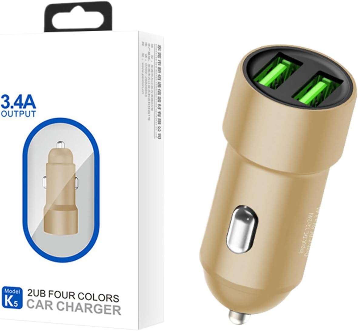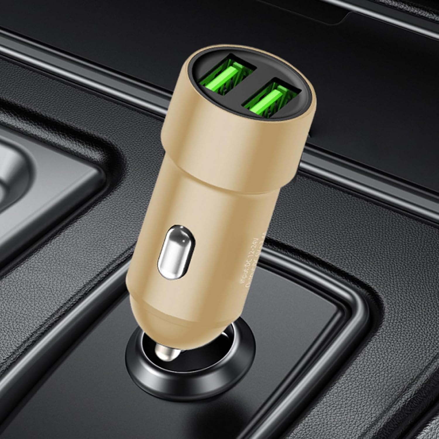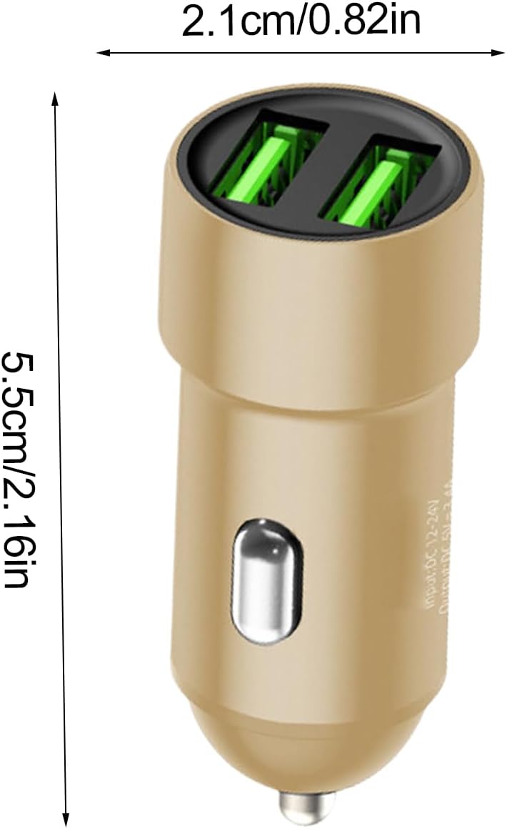 Safe to Use: With an intelligent chip, this two port USB car charger automatically matches the current and voltage for safe charging, protecting your device's battery life while outdoors Use Simply: Our Two Port USB Car Charger features two output ports for smooth charging of two devices simultaneously. With good conductivity and fast heat dissipation, you'll experience faster and more efficient charging outdoors Ensuring Stability: Reinforced with a thickened metal sheet, this two-port USB car charger provides a secure and steady power supply. It's the perfect fit for most car models, so you can relax and charge your devices simple, even on bumpy roads Easy to Carry: Two Port USB Car Charger is crafted from lightweight aluminum alloy, ensuring it's easy to carry and dependably powers your devices outdoors