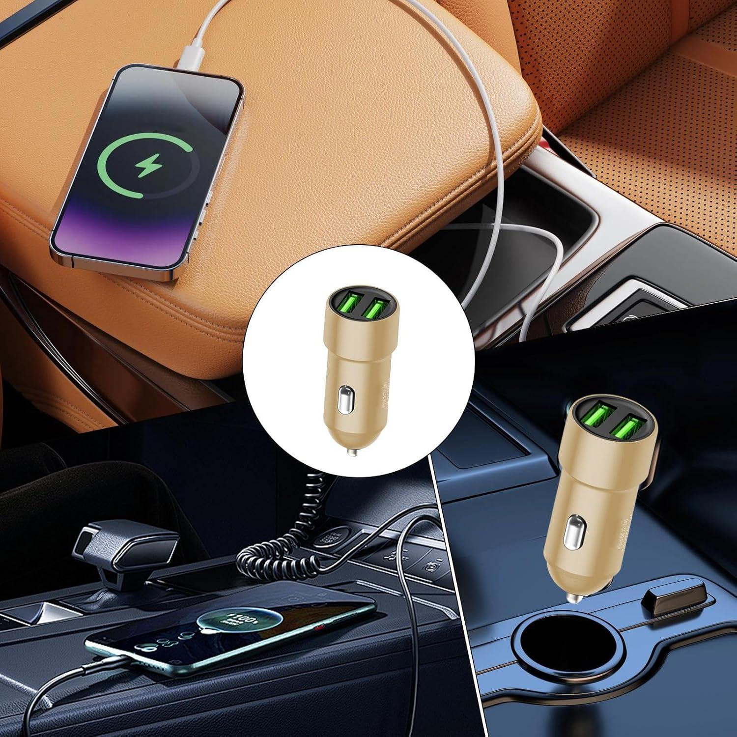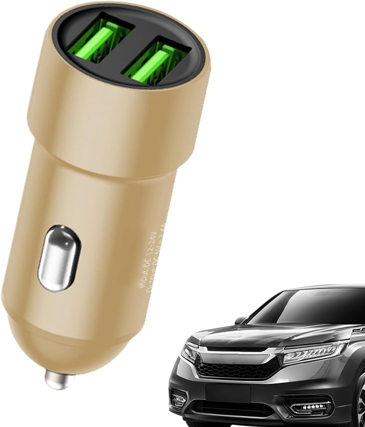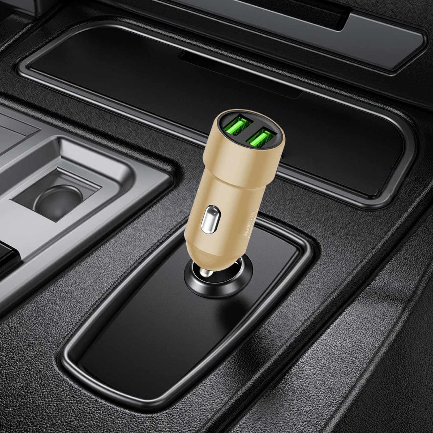 Safe to Use: With an intelligent chip, this two port USB car charger automatically matches the current and voltage for safe charging, protecting your device's battery life while outdoors Use Simply: Our Two Port USB Car Charger features two output ports for smooth charging of two devices simultaneously. With good conductivity and fast heat dissipation, you'll experience faster and more efficient charging outdoors Ensuring Stability: Reinforced with a thickened metal sheet, this two-port USB car charger provides a secure and steady power supply. It's the perfect fit for most car models, so you can relax and charge your devices simple, even on bumpy roads Easy to Carry: Two Port USB Car Charger is crafted from lightweight aluminum alloy, ensuring it's easy to carry and dependably powers your devices outdoors