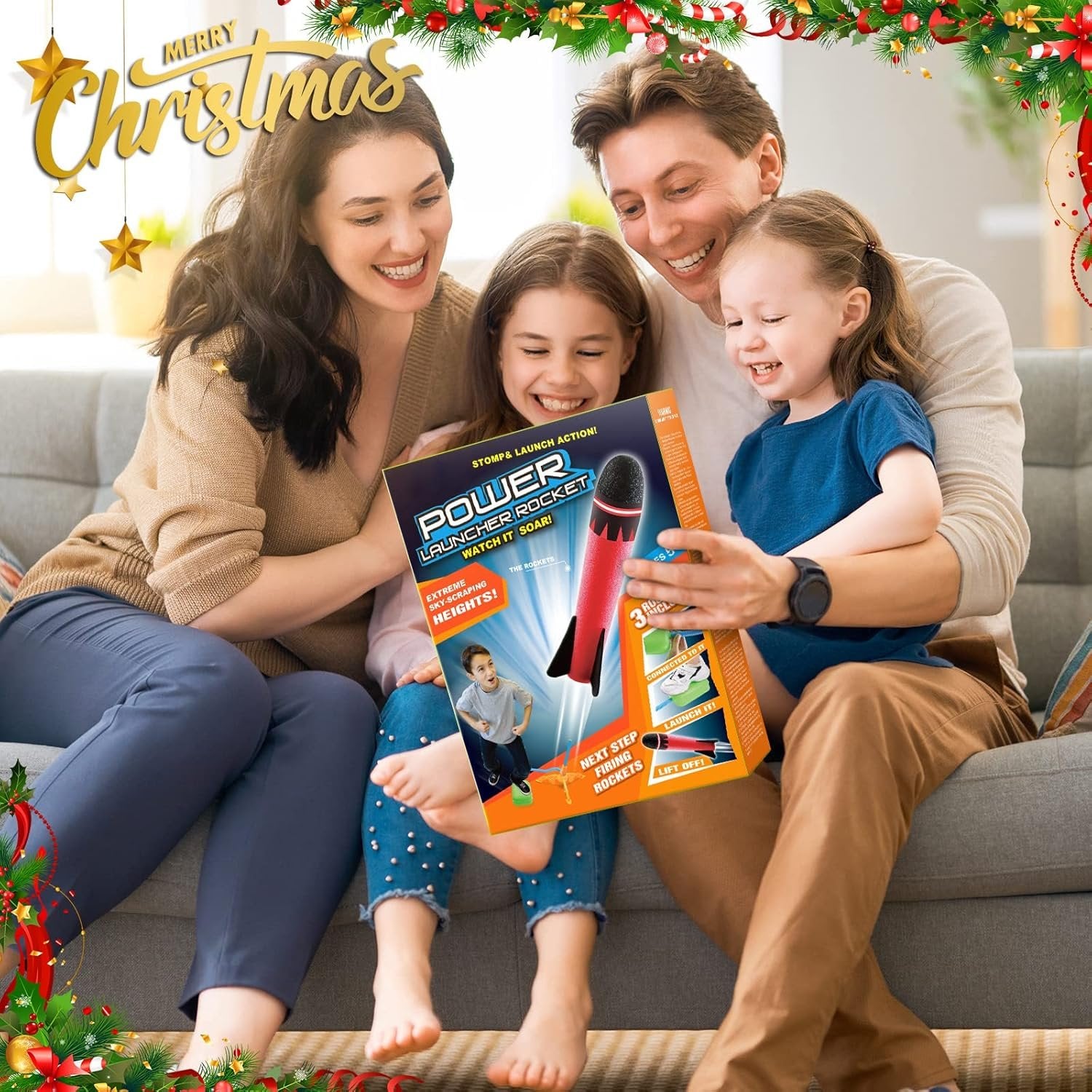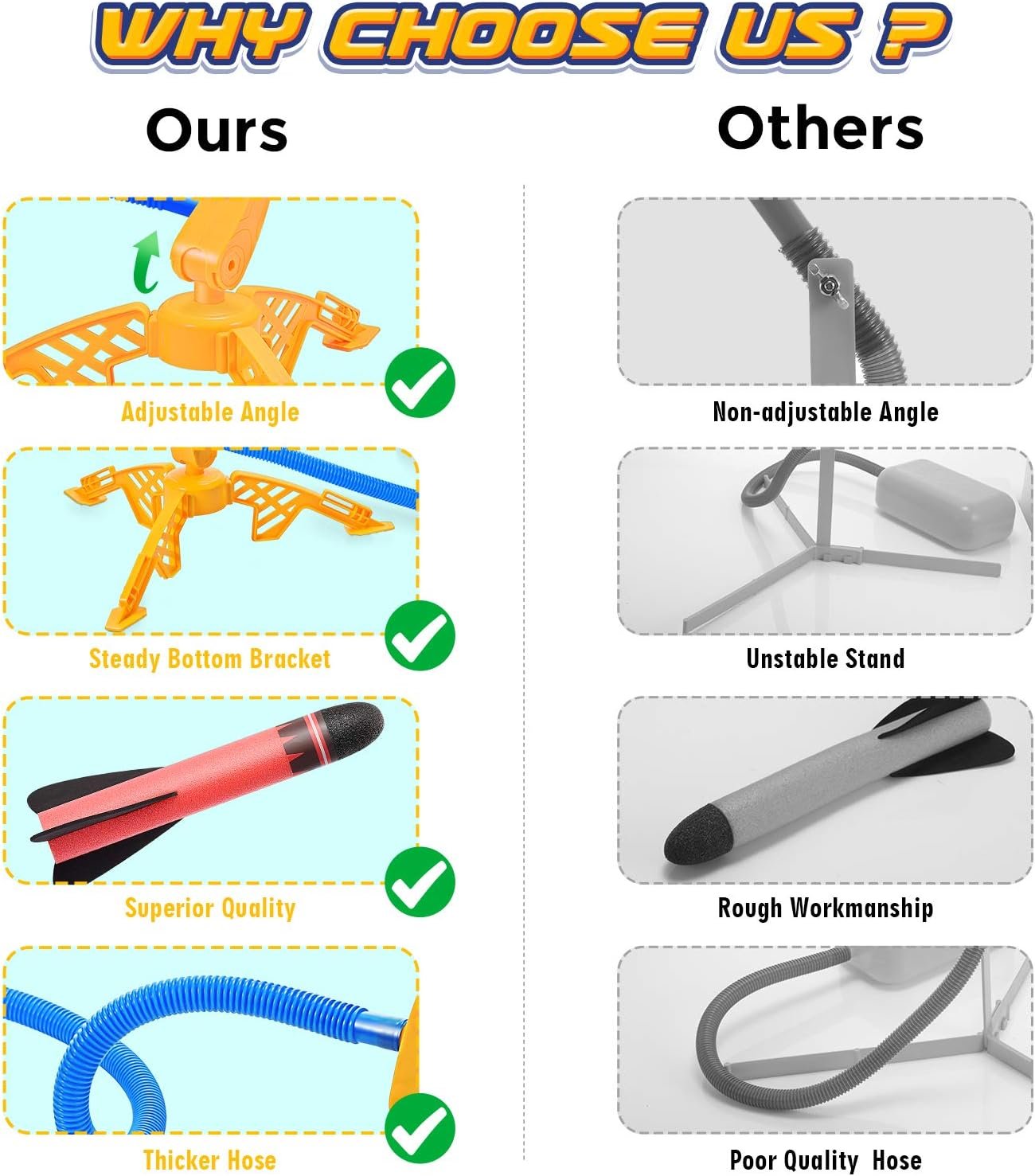 【Safe Design】 - Easy toys easy for kids to assemble. Made of high-quality safe foam material, the foam rockets will not hurt your kids through chasing. Lightweight & folding features enable kids to carry anywhere. 【Fine Motor Skills】 - Build the rocket toy with 3 brackets, place the rocket on the launcher and set the pump power system.Jump and stomp on the air pump, shoot the rocket to the sky in any direction you want. 【Outdoor Play Toy】 - Great for lawn, backyard, yard, park, playground beach and sand. Perfect for outdoor family activities , camping or party games. 【Promote Physical And Mental Development】 - The launching rocket game is the most effective way to help kids cultivate a good habit of sports and also can satisfy their curiosity to adventure the space, finally they will get the better knowledge of the science, such as, gravity, trajectory, the effects of wind and so on. 【Perfect Gift】 - This rocket toy is packed in exquisite gift box. The toy rocket kit keep the kids away from TV, mobile, video games, and let them play outdoors with family and friends. It's the perfect choice for kids birthday gift or Christmas gift.