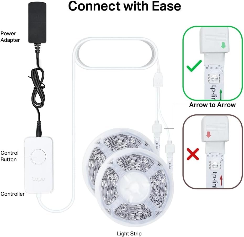 Away Mode - Simulate the presence of a resident to deter unwelcome visitors Schedule & Timer - Create schedules and set plans to automatically turn on/off based on the brightness/colour preferences you specify Away Mode - Simulate the presence of a resident to deter unwelcome visitors Customise Your Connection - Seamlessly integrate it with your preferred smart assistant, a compatible hub, or directly connect to the Tapo App Voice Control - Use simple voice commands to control your light strip with Alexa or Google Assistant