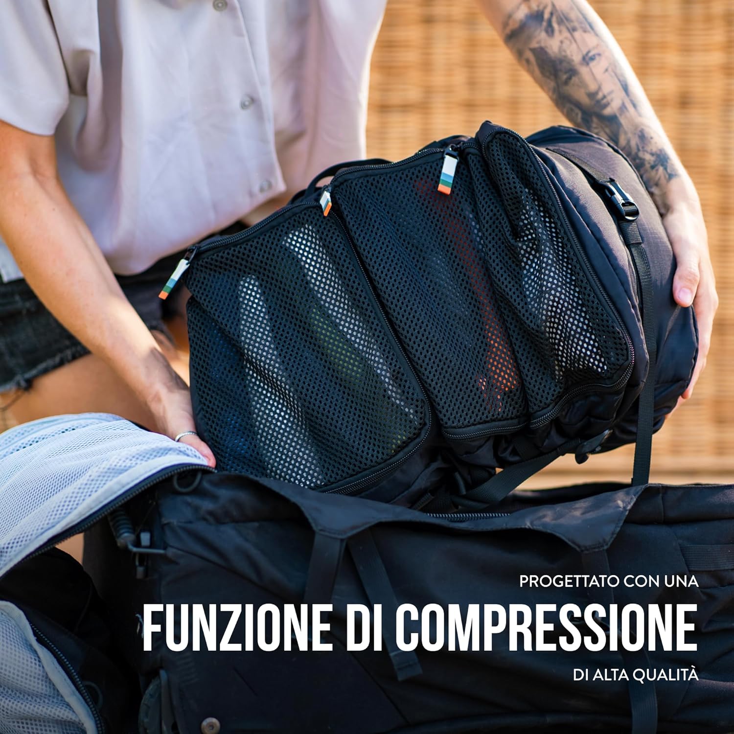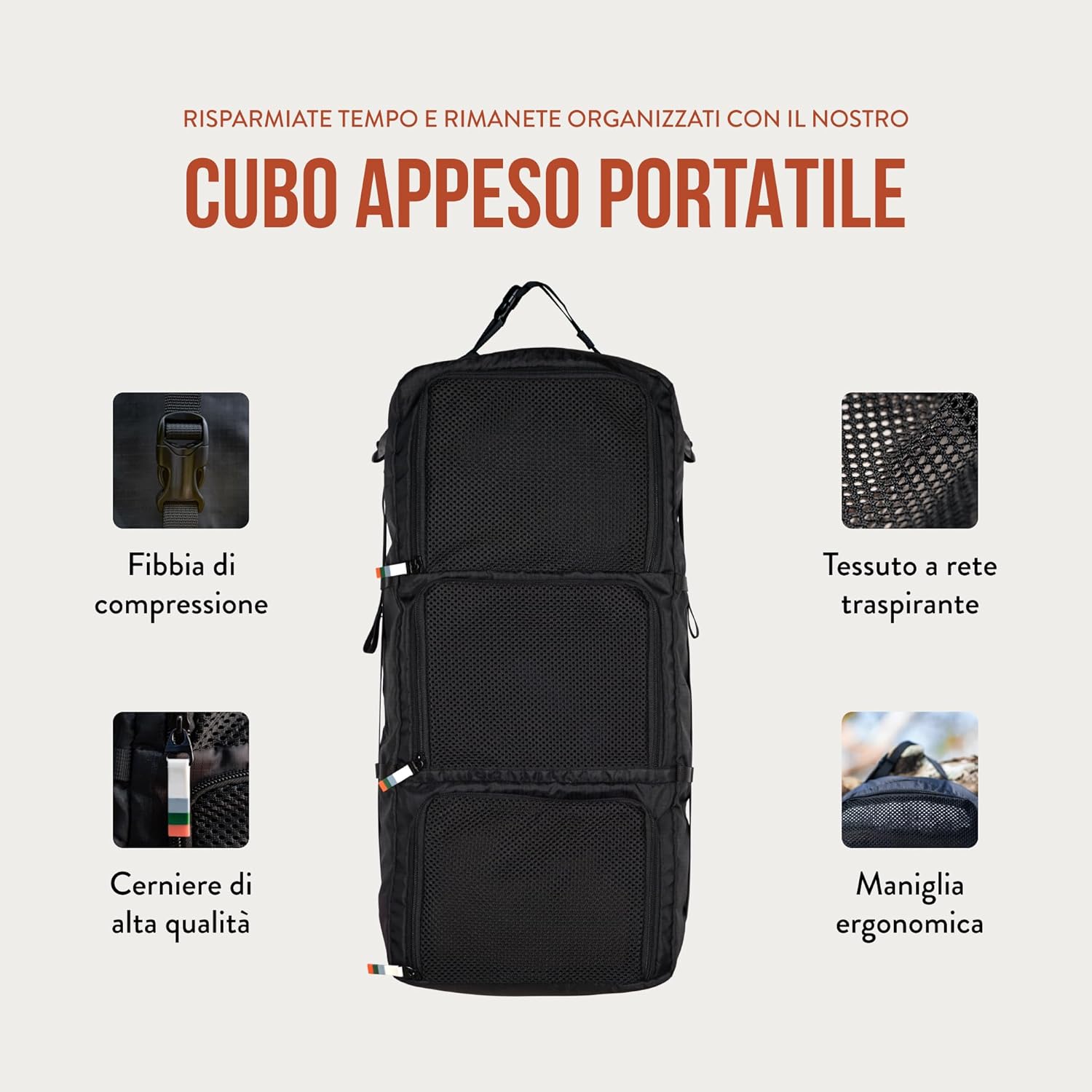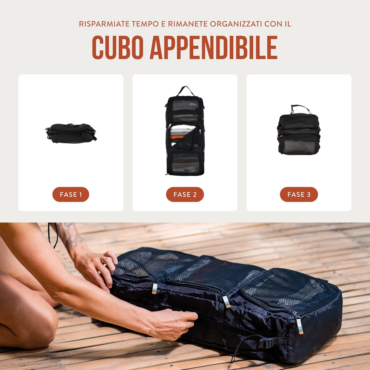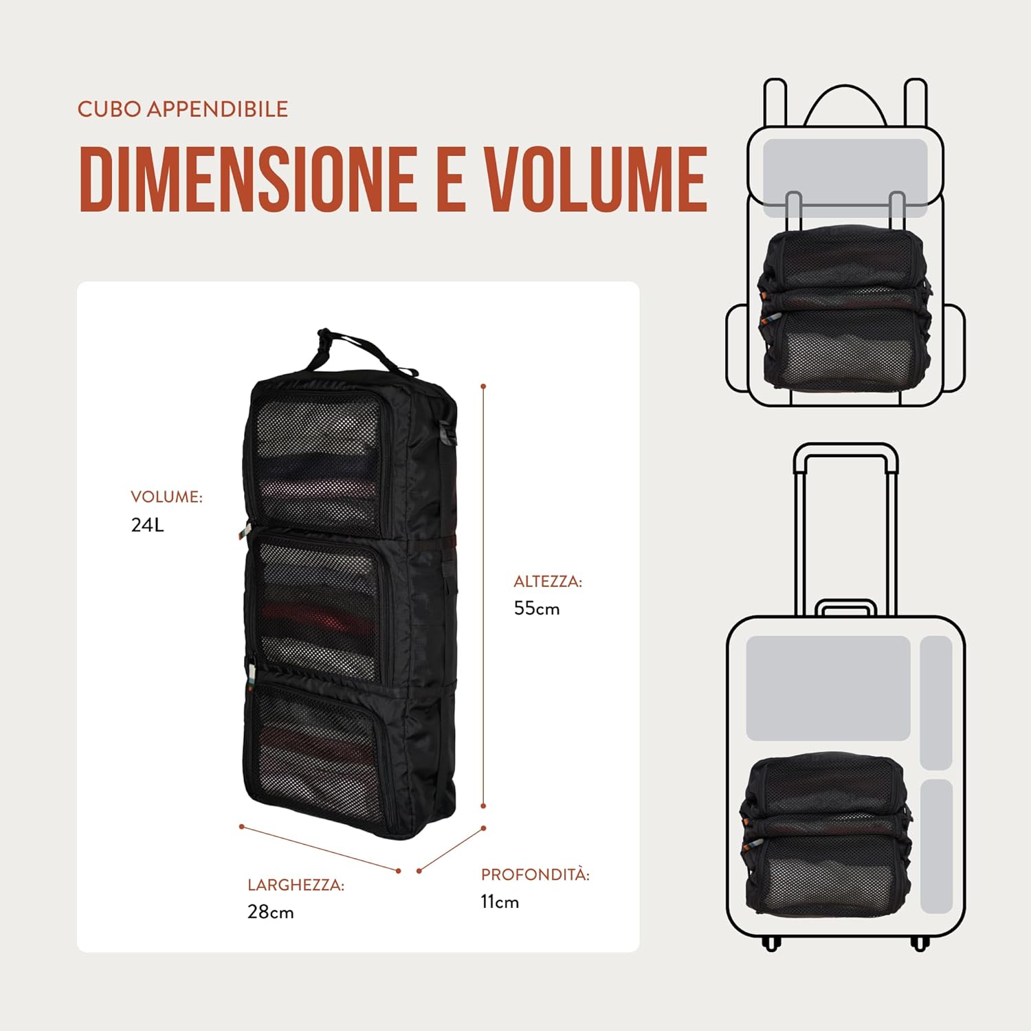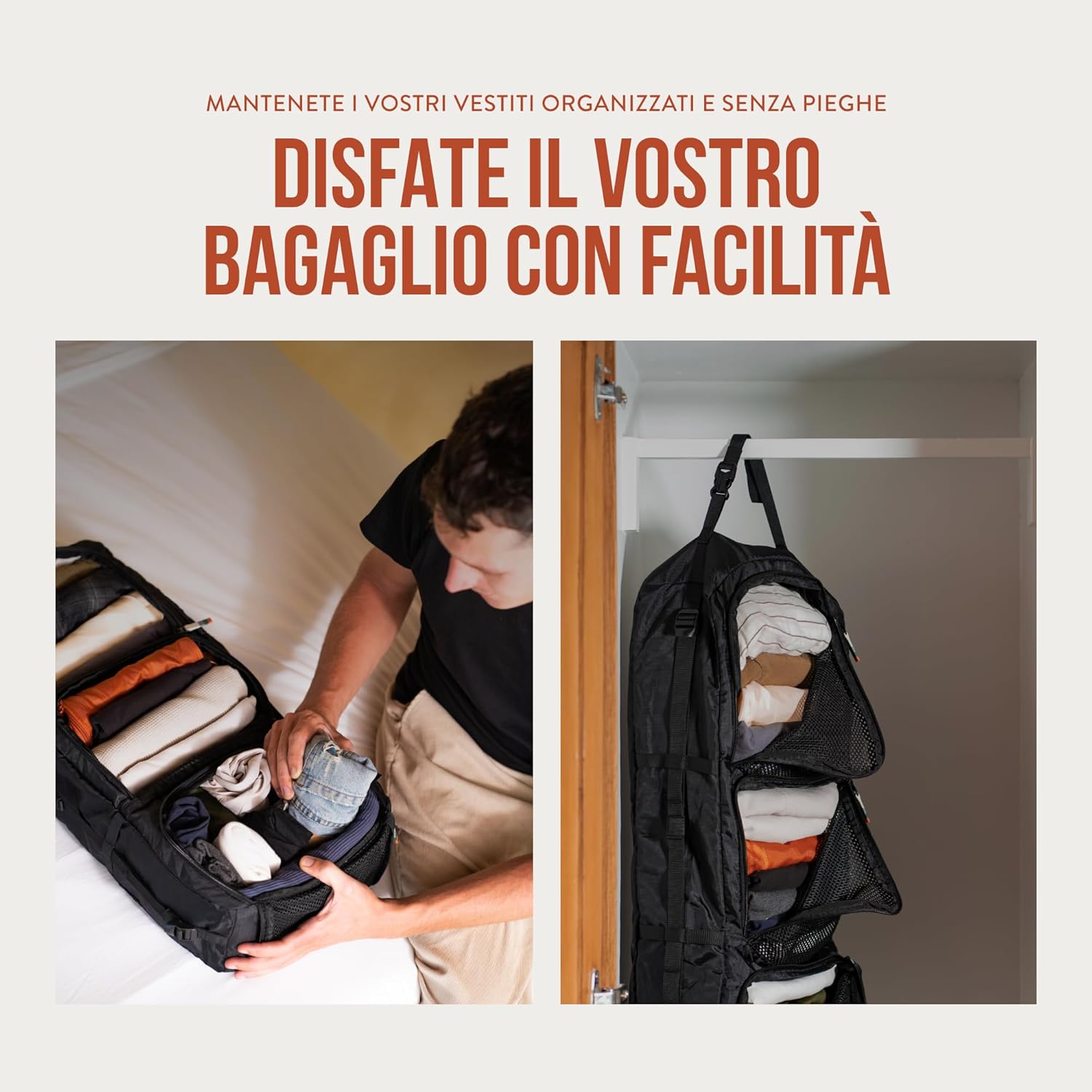 TRAVEL DUDE Compression Hanging Suitcase Organizer with Recycled Plastic Bottles | Hanging Packing Cube for Backpack | Portable Travel Rack for Bags Packaging in Black
