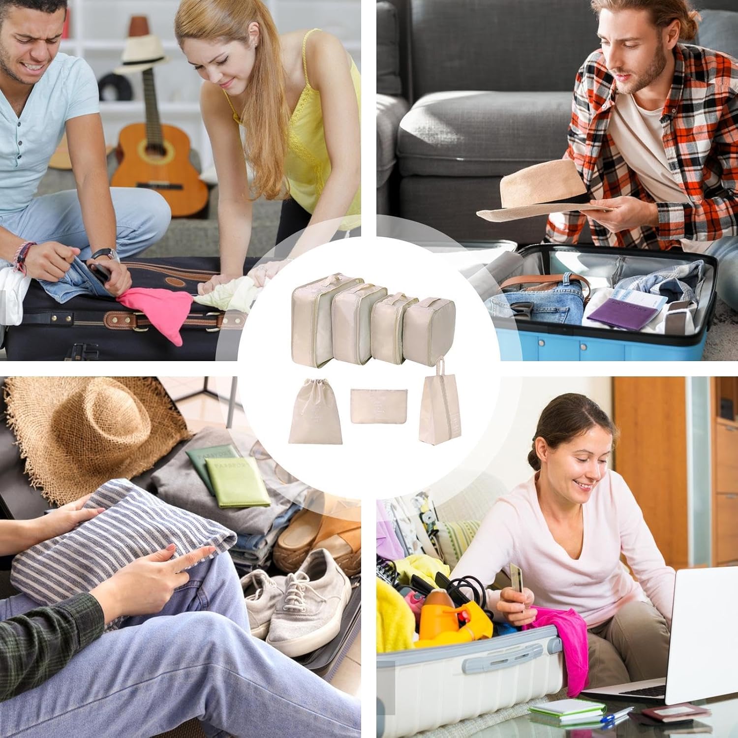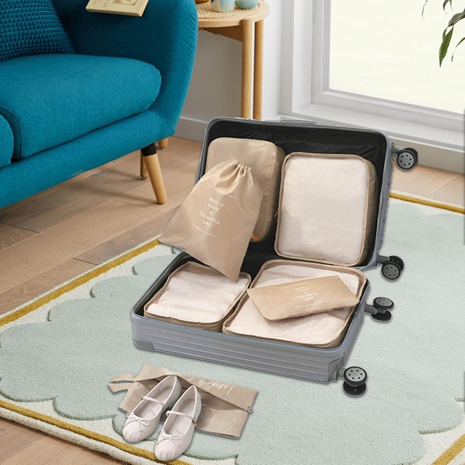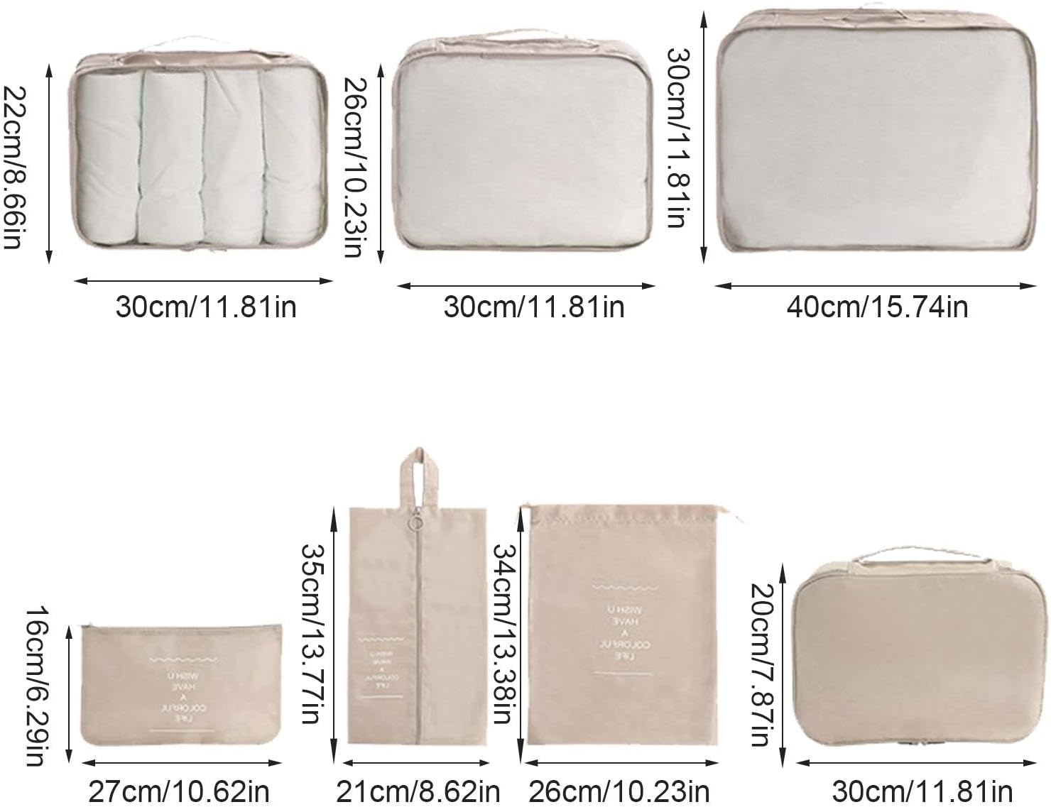 Travel Storage Bag, Suitcase Packing Organizer, 7-Piece Luggage Cubes Set, Lightweight Travel Accessories, Space-Saving Clothes and Toiletry Organizer for Trips