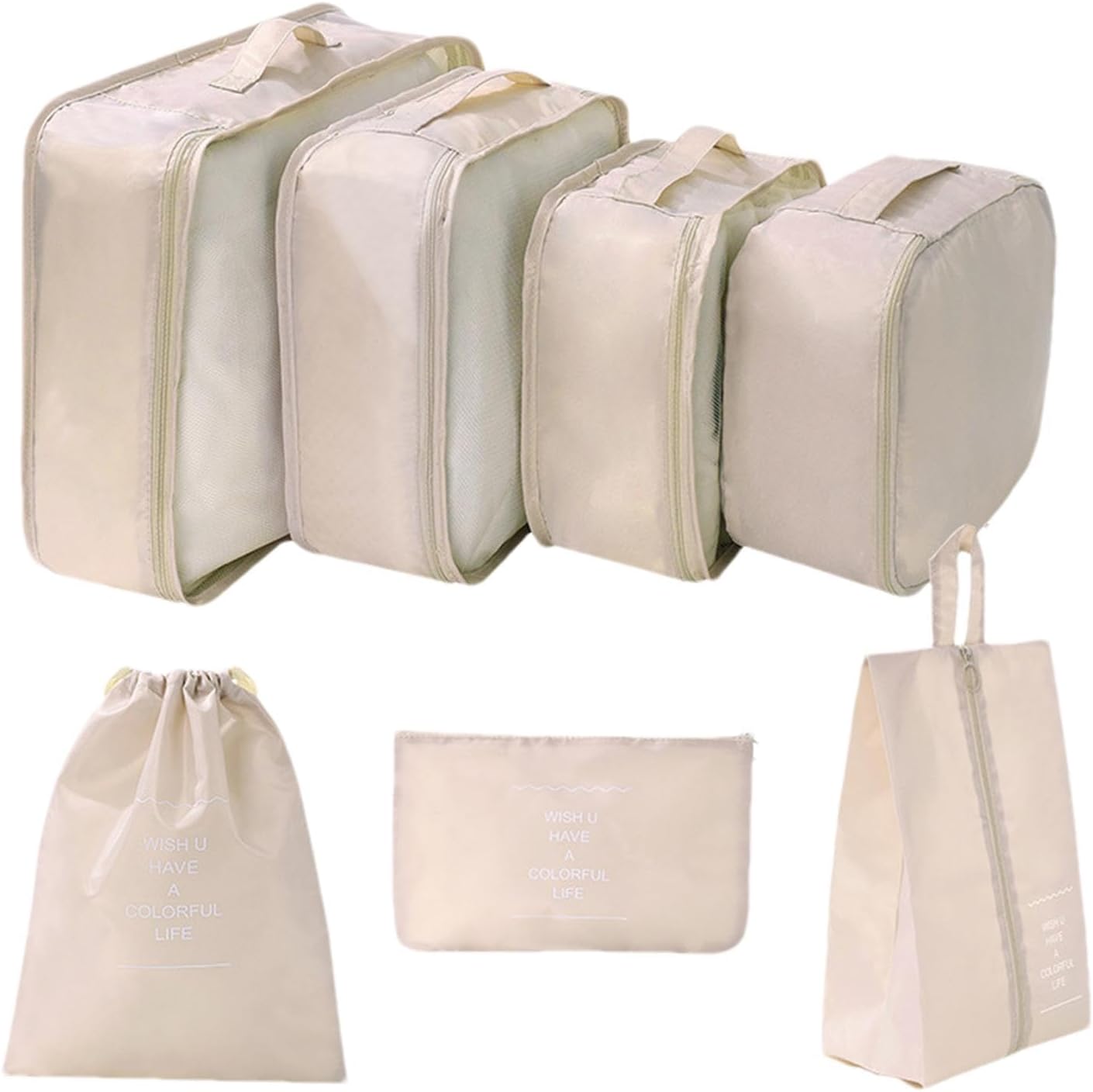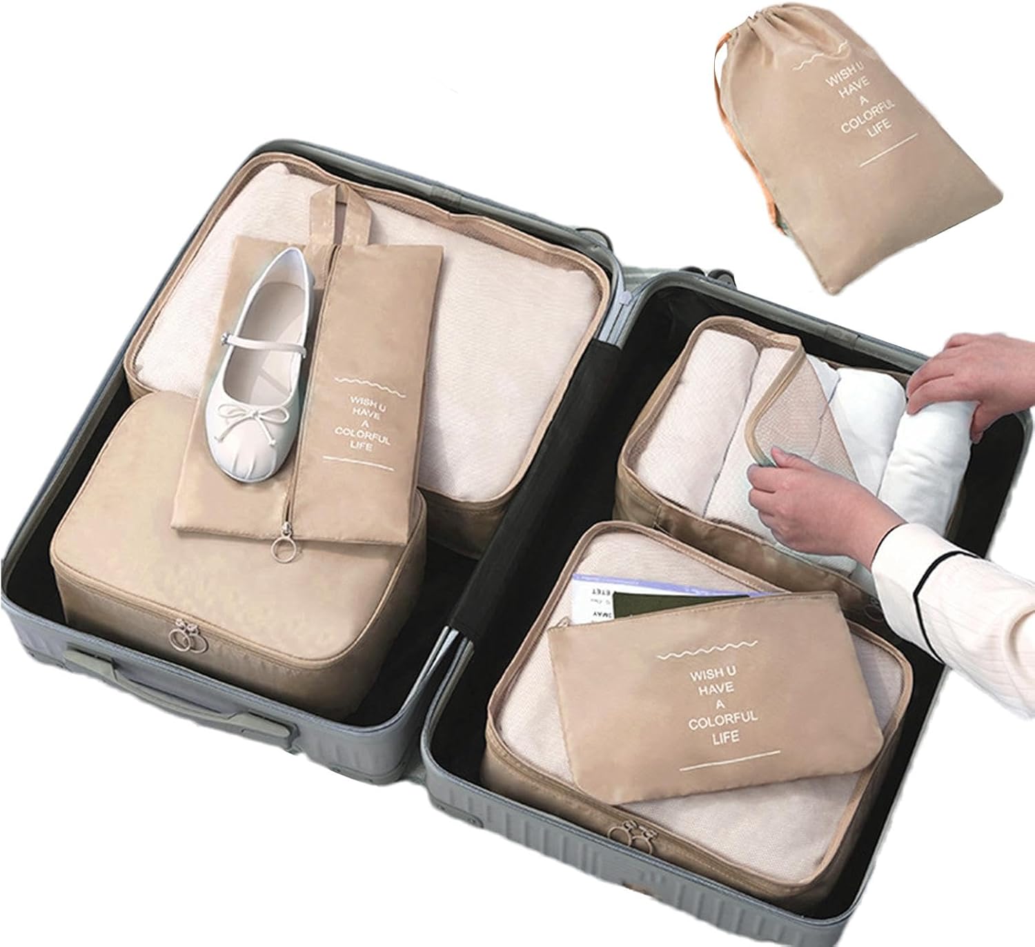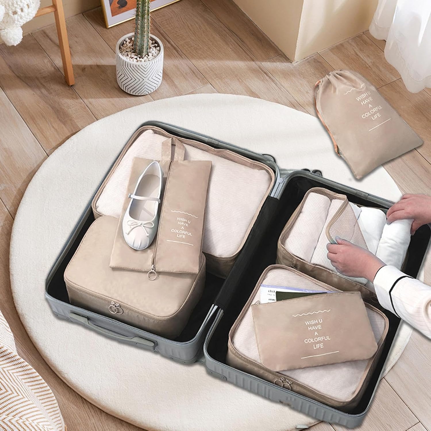 Travel Storage Bag, Suitcase Packing Organizer, 7-Piece Luggage Cubes Set, Lightweight Travel Accessories, Space-Saving Clothes and Toiletry Organizer for Trips