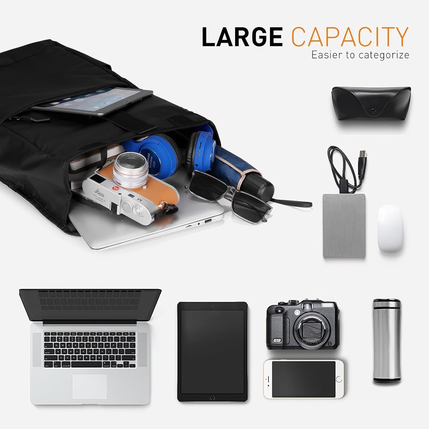 TREKKIN PLUS Laptop Backpack, Waterproof Outdoor Sports Casual Daypack Travel Essentials Black