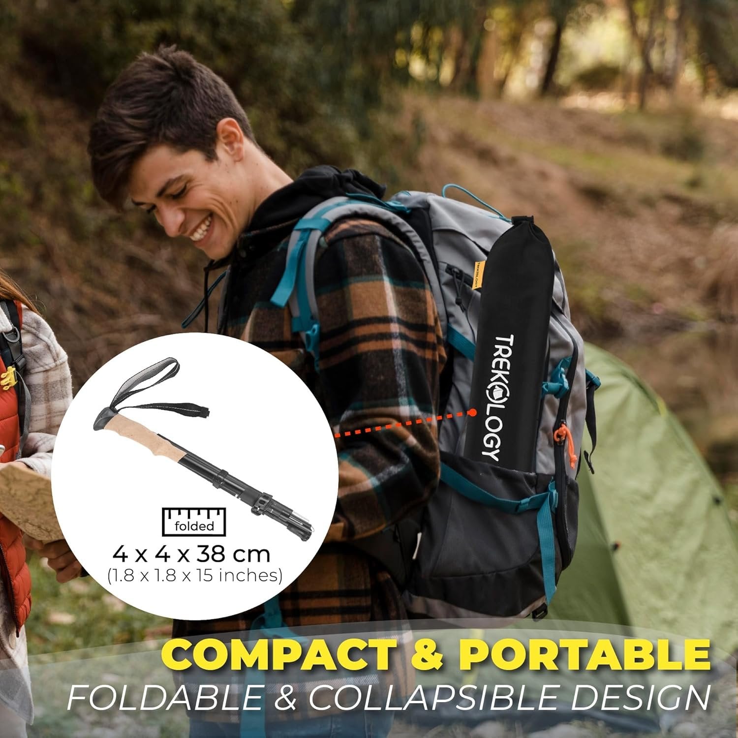 TREKOLOGY Trekking Poles – Adjustable, Collapsible Hiking,Walking Sticks for Men & Women, Lightweight Folding Poles for Backpacking, Seniors & Travel – TREKZ XE