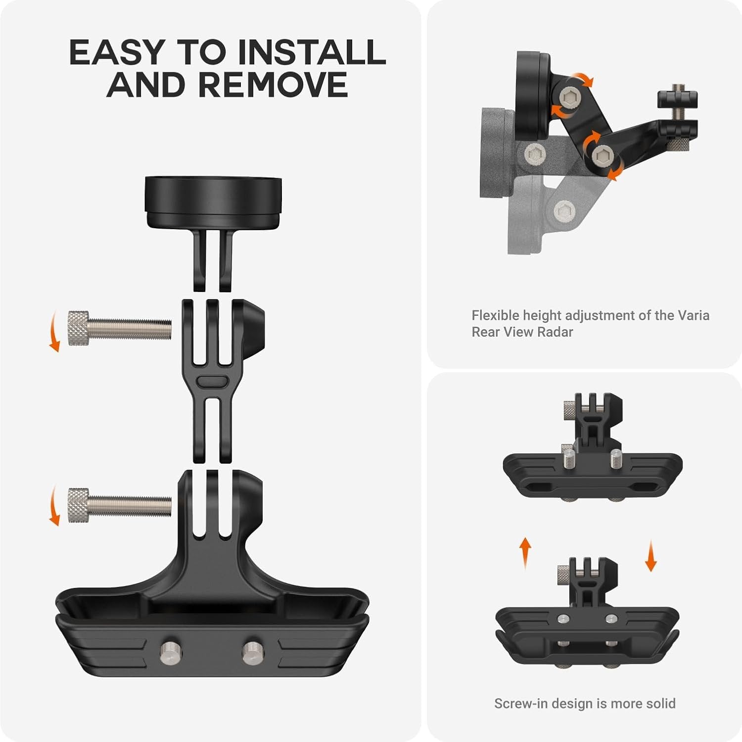 【Durable Construction】Made of marine-grade aluminum, advanced injection moulded co-polymer. It is strong enough to keep your Varia radar or tail light on your bicycle no matter the terrain 【Confidence】While your Varia or similar radar system increases your awareness and personal security when you’re out on the road, our mount builds on the confidence providing a strong and secure mount for your Varia 【Safe & Secure】We are confident that upgrading to a TUSITA seat rail mount kit will give you piece of mind knowing you’ve chosen the best way to securely lock and perfectly position your Varia radar or tail light on your bike so you can focus on your goals, whether that be having fun or going fast, or both