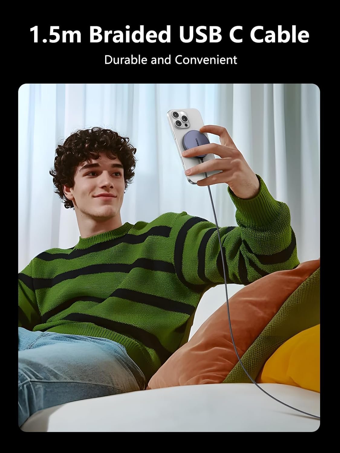 Qi2 15W Ultra Charging: UGREEN MagFlow Qi2 Wireless Charger 15W is Qi2 certified and delivers up to 15W high-speed charging power for iPhone 12-16 series firmly in place. It has twice the power of a non-certified 7.5W charger Wide Compatibility: This Qi2 wireless charger supports 15W for iPhone 16/15/14/13/12 MagSafe series. And 5W for AirPods 4/3/2/Pro and other Qi-enabled wireless Bluetooth earphones. Charge your iPhone 16 Pro from 0% to 35% in just 30 minutes. Note: 30W adapter is required (Not included) Safety and Reliable: 15W Magsafe wireless charger is made of fire-resistant aluminum alloy material. High-quality chips and capacitors form an intelligent security system, providing 7 times protection, such as foreign object detection, temperature control, surge protection, and short circuit protection Strong Adsorption: Wireless charger iphone with the same magnet as iPhone, which has a very high and precise magnetic attraction. Your cell phone can be charged as soon as you put it down. Whether you are charging, playing games, or watching TV, the charger is very stable Simple and Portable: Wireless portable charger has a compact design and comes with a 1.5M USB C braided cable, making it very easy to carry. It is your best companion whether you are traveling or on a business trip