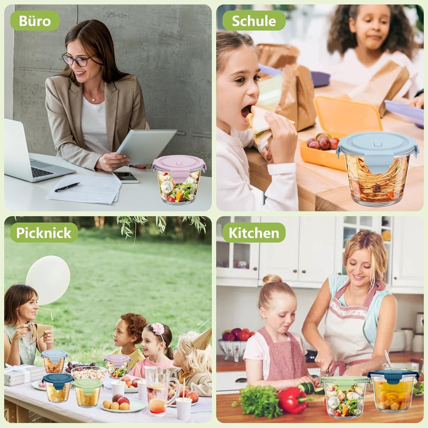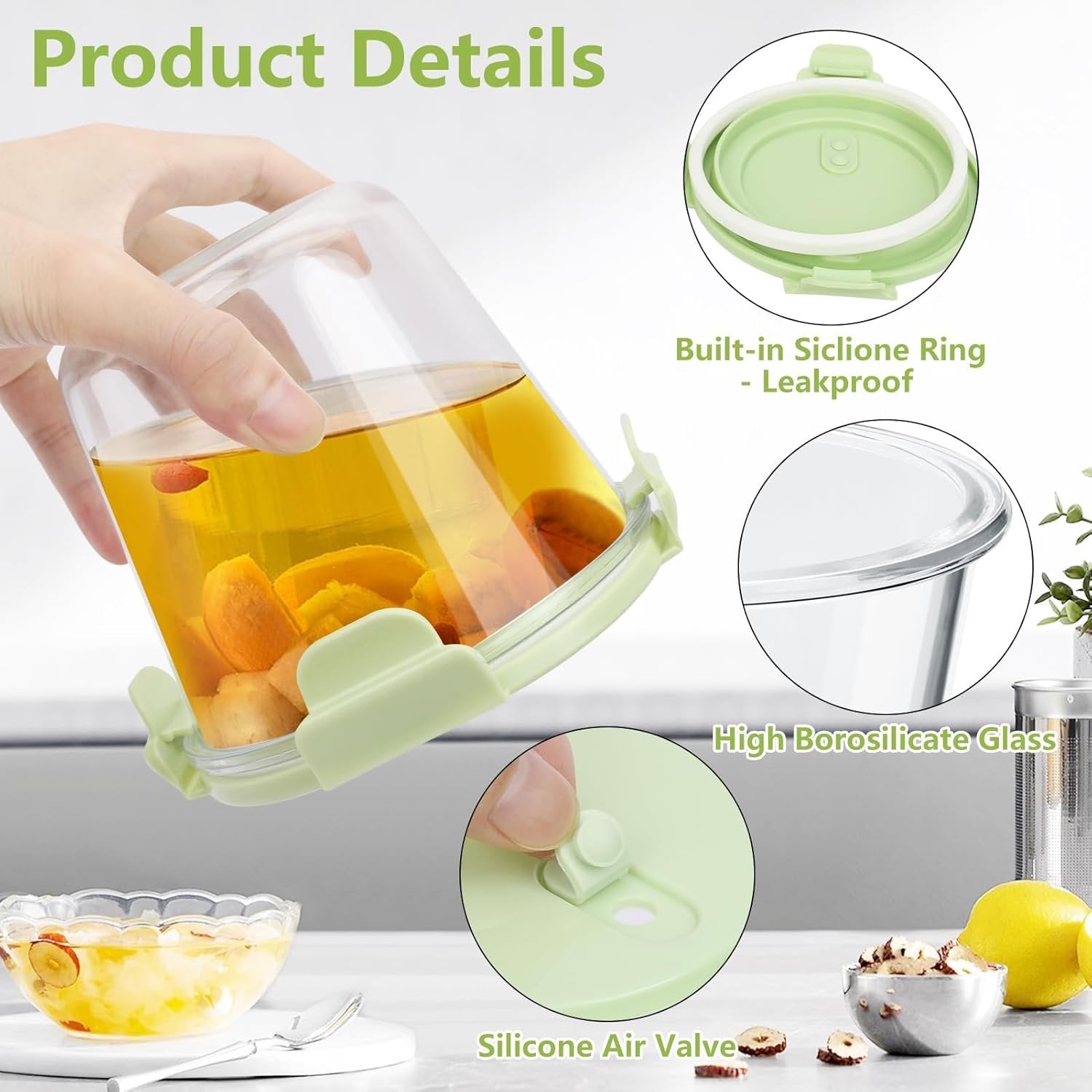 Premium Quality Material and Versatile: 710ml/24oz Glass Food Storage Containers are crafted from high-quality borosilicate glass, ensuring durability and food-grade safety. These containers are perfect for all your storage and organizing needs, providing a reliable solution for preserving freshness. With their generous capacity and compact size, they are ideal for storing overnight oats, portion control, leftovers, and even lunch for work. Whether you're in the office, gym, kitchen, or on the go, these containers are your perfect companion. Airtight and Leakproof Design: Say goodbye to messy spills with our innovative Four-sides leak-proof locking sealing lids. These lids offer superior air-tightness, keeping your food fresh for longer periods. The BPA-free lid provides peace of mind in terms of safety and convenience. Whether you're storing liquids or solids, our Glass Soup Containers ensure that the food fresh. Space-Saving Stacking Storage: We understand the importance of maximizing your storage space. That's why the lid of our round food container is designed to make it easy to hold and stack together. No more cluttered cabinets or refrigerator shelves. The padded rubber of the lid can also be removed for easy cleaning. Enjoy a neat and organized kitchen with our space-saving solution. Reliable and Reusable: Invest in our reusable Glass Food Storage Containers and say goodbye to single-use plastic. These containers with lids are designed for long-lasting use, reducing waste and promoting sustainability. Whether you need a set for meal prep, soup storage, or general food storage, our glass containers provide the reliability and functionality you need. Upgrade your kitchen essentials with our trusted glass sets with lids.