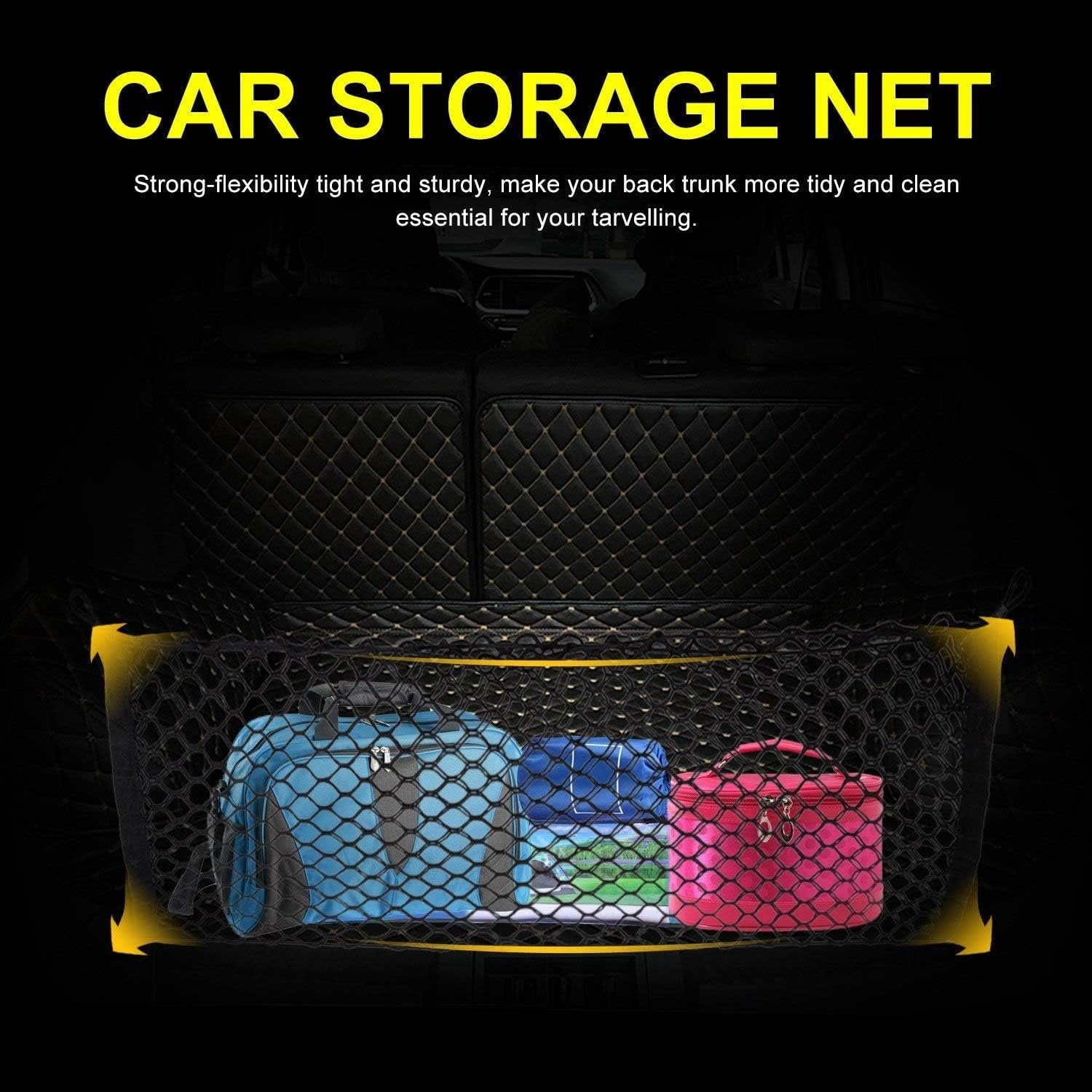 Vehicle service type-Truck Material-Nylon Colour-Black Brand-Yosoo Instructions: Protect you luggage from shock. make it and tidy. Strong scalability, lightweight mesh construction makes it easy to pack. Practical and convenient in-car storage solution.Specifications: Material:nylon+plastic Total size:90cm x 40cm(L X W) Color:Black Package Includes: 1x Car rear storage bag ã€CARGO NET MESH STORAGE ORGANIZER】 - Strong scalability, lightweight mesh construction makes our Car Rear Mesh Bag easy to pack, firm and ã€KEEP ITEM TIDY】 - Stretchy for easy loading and help keep heavy items in net. Protect you luggage from shock. keep items from shifting during driving and protect cargo area from spilling, make them tidy. PRACTICAL and CONVENIENT in-car storage solution. ã€INSTALLATION IS EASY】 - Fine workmanship, practical, easily attach to mounting points in the rear cargo area with 4 self-locking hooks. Be a convenient bag, suitable for car trunk, organizing loose items, saving space. ã€DUAL-PURPOSE NYLON NETTING】 - Spider style or envelop style. Instant upgrade to the interior of your car, improve in appearance and styling ã€CARGO STORAGE ORGANIZER ACCESSORIES】 - 4Pcs plastic hook + 4pcs plastic hanging + 4pcs screws