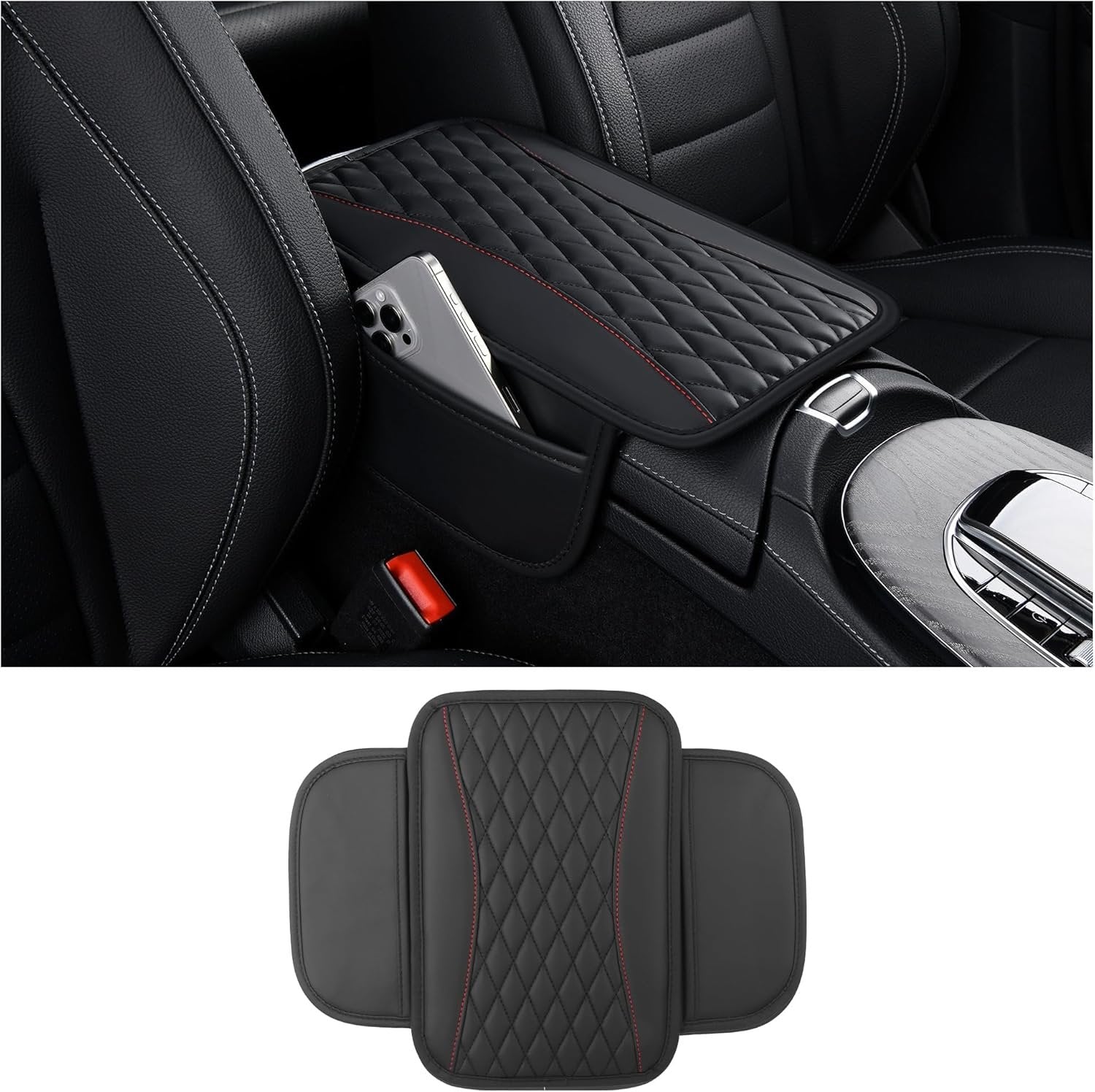 Enhanced Side Pad Design: Our car armrest cover is thinner and suitable for all seasons. There is a 23*12.5cm storage pocket on the left and right, which expands the storage space and is practical. Ideal for mobile phone, keys, tissues, documents and small daily items. Premium Microfiber Leather Material: The car armrest cover is made of premium microfiber leather, which is soft and skin-friendly. Exquisite diamond-shaped stitching and thick memory foam inside which slowly recovers its shape, not easy to deform and break. Lightening the driver's effort: The universal car armrest cover is ergonomically designed, provides the right support to the arm and effectively distributes pressure. Protects your car centre console from dirt and scratches, ideal for long journeys and for added comfort. Non-destructive installation: This car armrest cover is easy to install, just slip the elastic band into the armrest cover and close it. The installation of the elastic keeps it firmly in place and the numerous small bumps on the back provide effective non-slip protection. Buying Guide: You will receive 1 x Car Arm Rest Cover (31.5*20.5*2.3cm). Please measure the size of the armrest storage box before purchasing. Choose from seven beautiful and delicate colours. Suitable for most vehicles such as cars, trucks, SUVs, RVs, vans, etc, with a wide range of applications!