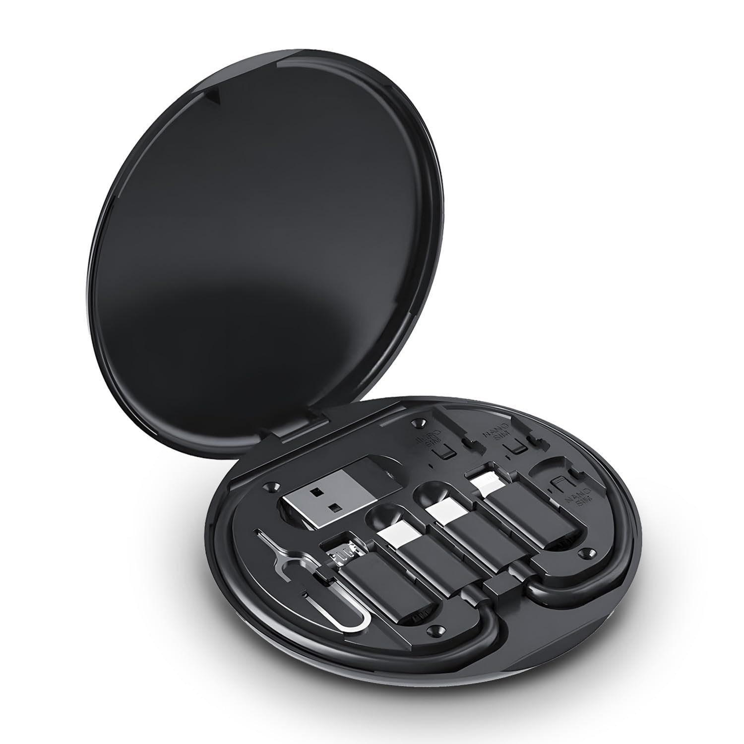 USB Adapter Cable Conversion Storage Box 9 in 1 Cable Case Multi-Type Charging Convertor USB C to Lightning Type C Micro Data Transfer Tool Contains Card Slot Tray Eject Pin, Use as Phone Holder,Black
