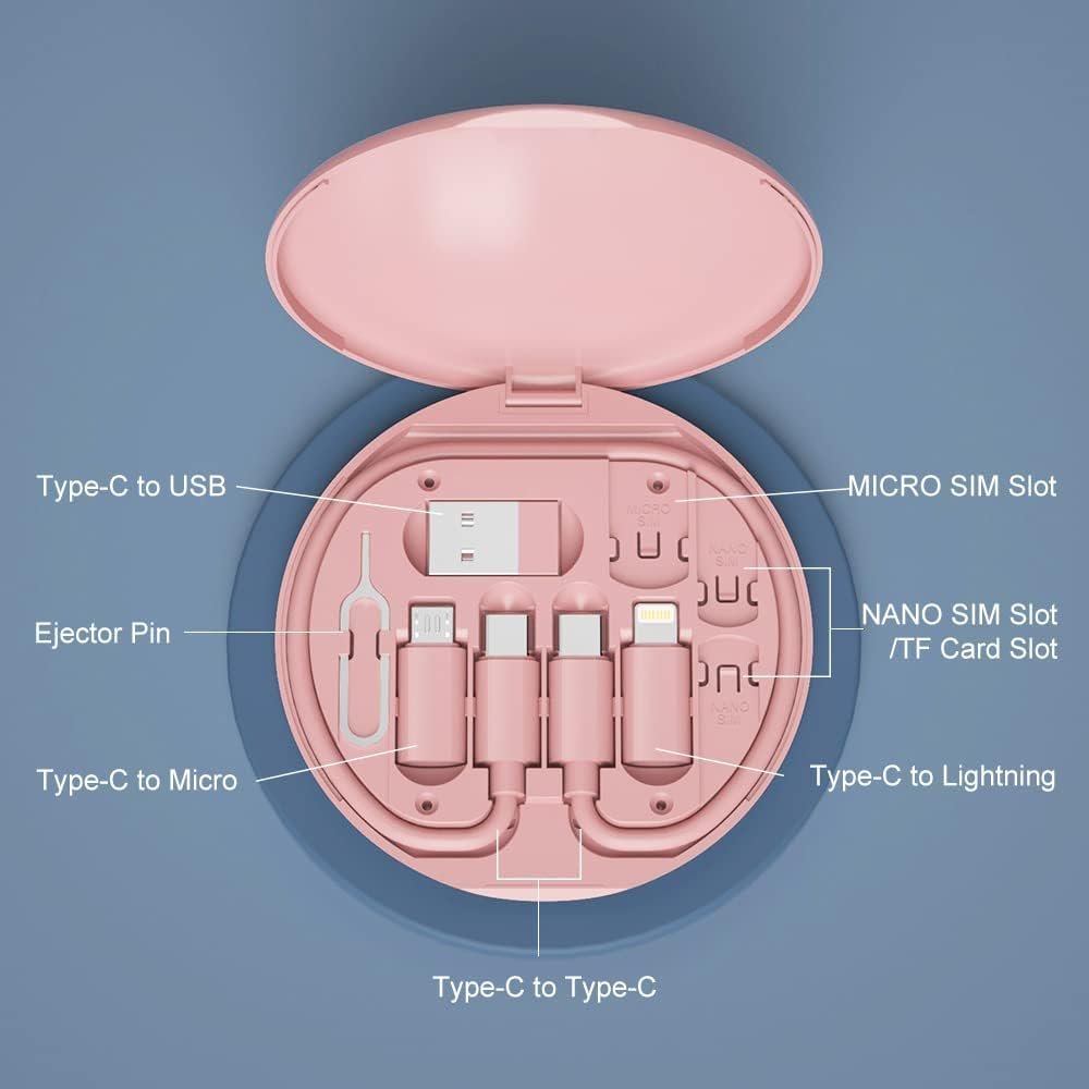 COMPACT & CONVENIENT: This micro USB charging cable box comes with multiple converter adapters, so you can easily carry this travel-friendly USB C adapter in your wallet or handbag wherever you go, no more worrying about forgetting or losing your cables NEAT & ORGANIZED: This multi charging cable works with most common flash drives and has a cable storage box that protects the cable ends and prevents them from getting tangled in your bag, keep your cables neat and tidy with this smart solution SIM CARD HOLDER: This adapter kit also has a slot to securely store your SIM card and an eject pin tool to pop it out when you need to switch SIM cards on your phone in different countries, travel with ease and convenience with this multifunctional cable UNIVERSAL COMPATIBILITY: This travel adapter USB C is designed to be compatible with a wide range of devices, including smartphones, tablets, digital cameras, portable speakers, and more, It ensures that you can charge and sync your devices hassle-free PHONE AND TABLET STAND: This versatile USB C to lighting adapter can also double as a phone or tablet holder, so you can use it whenever you need a stand to prop up your devices, watch videos, play games, or browse the web with this flexible and durable cable