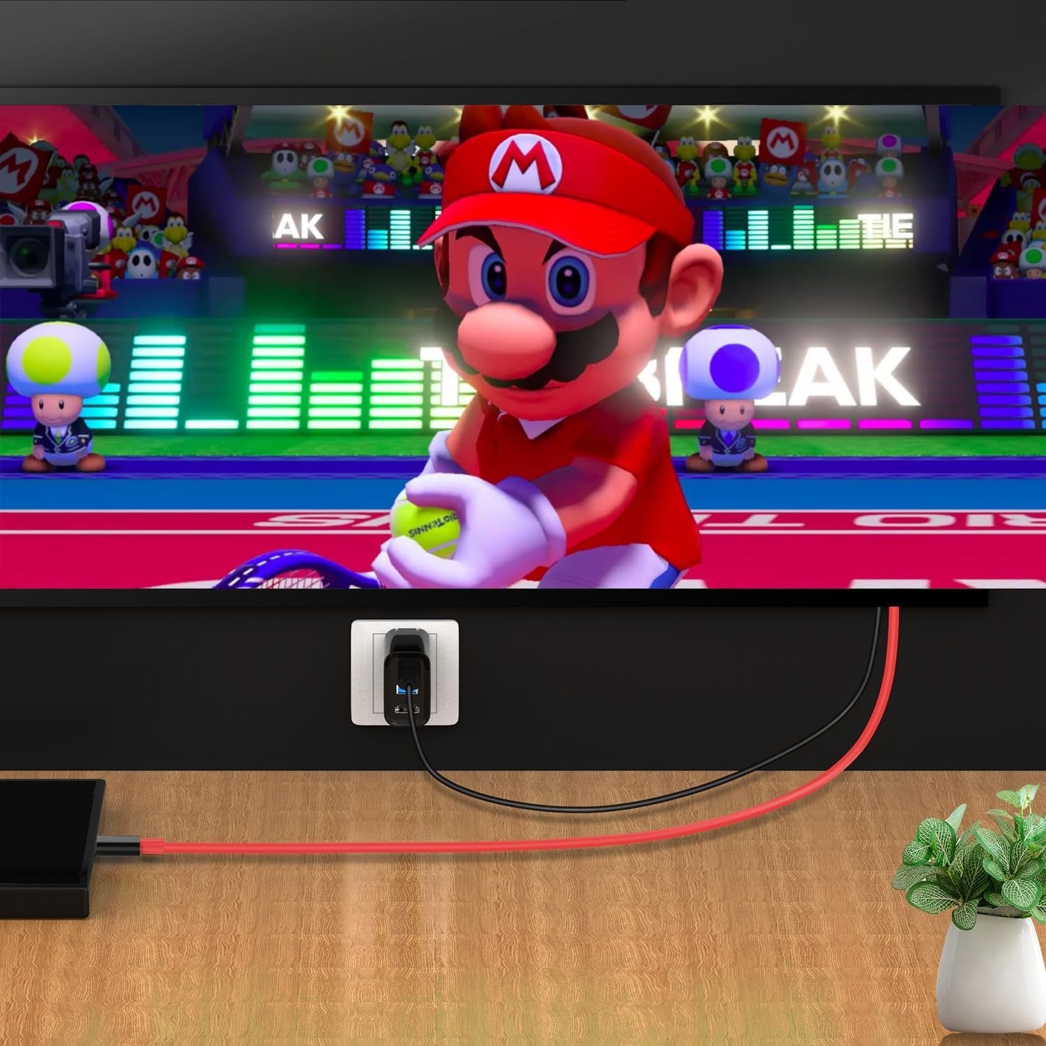 🤙USB C to HDMI Adapter Cable with Broad Compatibility: Boreguse USB C to HDMI Adapter Charger Cable for Nintendo Switch Dock Cord and Nintendo Switch Dock Adapter widely compatible with Nintendo Switch NS/OLED Mode, Steam Deck, ★(BUT, This USB C to 4K HDMI Conversion Cable for Nintendo Switch HDMI Adapter CANNOT be used for the Switch Lite, and not for Nintendo DS). 🤙6FT/1.8M Switch Docking Station for Tv Mode:This Boreguse for Nintendo Switch Docking Station support Switch TV Mode,4K30hz,1080P and 720P Video Output ★(Nintendo Switch only supports 1080P ). 1.8M/6FT Switch TV Dock with Cords offer enough distance from TV to your game pad. 🤙Switch Dock HDMI Cable with New Upgraded: This Nintendo Switch USB C to HDMI for Nintendo Switch HDMI Cable with perfect portable MINI design combines HDMI, USB C connector, and 100W charging port in one cable, Completely replaces official Switch Dock and HDMI projection cable,Easy to go. 🤙Switch Charging Dock with 100W Charging Port:This Nintendo Switch Charging Dock with intelligent chip certified by PD, it can effectively convert fluctuating voltage into stable voltage. This Nintendo Switch Charger Dock supports 100W PD fast charging,so you can play while charging. 🤙You Should Know: ①An additional USB-C charging cable is required. It needs to be plugged into the USB-C port to power the Switch Dock. ②The power source needs to support the power requirements of the Switch, which is typically 39W. For example, the Official Charger has a rated power of 39W, with a rated voltage of 15V and a rated current of 2.6A.★(There is no charger cable or power adapter in the package)★(Note: We recommended to use the original charger)