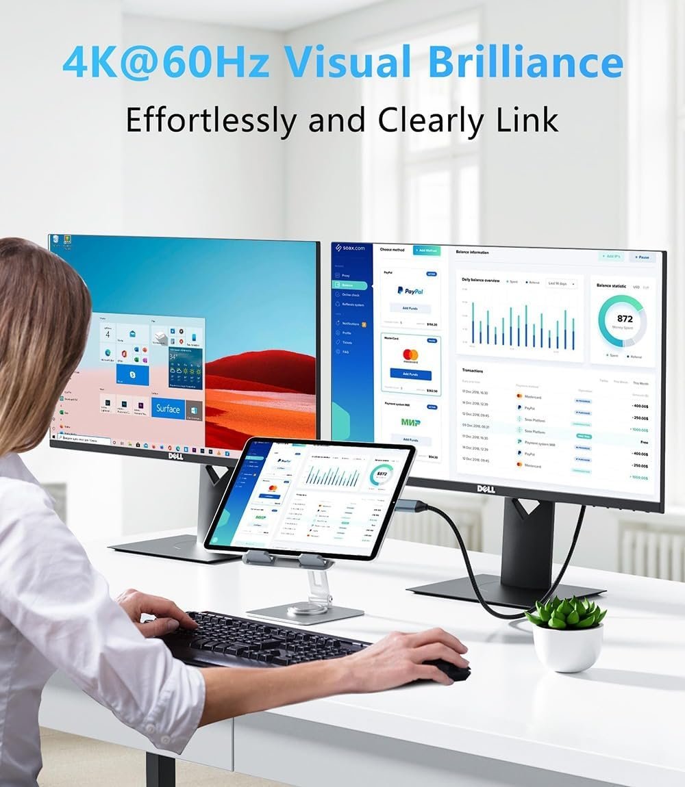 [Plug and Play] - Experience hassle-free connectivity with our USB-C to HDMI Cable. Simply plug it in—no drivers needed! This cable supports both mirroring and extended display modes, making it perfect for a variety of applications. Whether you’re setting up a home theater, enhancing your gaming experience, or optimizing your home office setup, this cable delivers seamless performance and versatility to meet all your needs. [Wide Compatibility] - Our USB-C to HDMI Cable is designed to work seamlessly with a broad range of devices. It supports 4K Ultra HD TVs and high-definition TV boxes and is compatible with Thunderbolt 3 and 4. This versatile cable connects effortlessly with the latest devices, including iPhone 15, 15 Pro, 15 Plus, and 15 Pro Max; MacBook Pro/Air (2018, 2019), Mac (2018, 2017), Mac mini, and Mac Pro; Surface Book 2 and Surface Go; Samsung Galaxy S22, S21, S20 Plus, and Ultra; Pixelbook; Dell XPS 13 (7390) and XPS 15; as well as iPad Pro (2018) and iPad Air 4. Enjoy a reliable and high-quality connection for a wide range of devices with our USB-C to HDMI Cable. [Stable Transmission & Anti-Interference] - Crafted with a tin-plated copper core and advanced shielding, our USB-C to HDMI Cable ensures a stable and strong signal. The multi-layered shielding design effectively reduces interference, delivering excellent sound and image quality with no flickering or lag. Enjoy reliable performance for all your audio and visual needs. [Durable] - The 6FT 1.8M cable is made of high-quality PVC material, which is soft and durable.