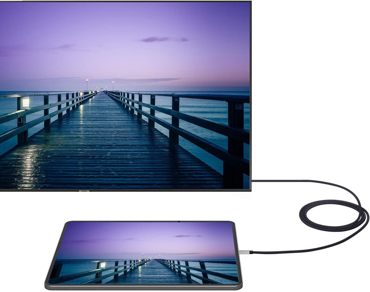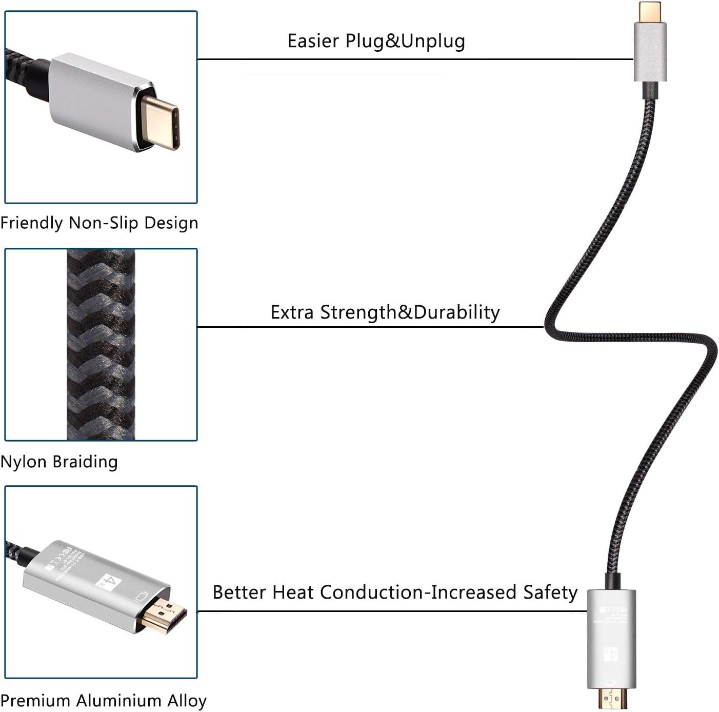 【Supports 4K 】The type c to hdmi cable supports streaming 4K(3840*2160) content, provides blazingly fast data transfer speeds through its HDMI 1.4 interface. No need worry about the delay transmission, blur and distortion. Backward compatible with 1080p. 【Plug & Play】This USB C to HDMI cable just Plug and Play, no adapter or driver/software/external power required. Perfect solution for your USB-C MacBook Pro / MacBook, iMac, Dell XPS 13/15 and ChromeBook Pixe, drive one or two HDMI monitors/displays, Compatible with HDMI-enabled TVs/Monitors/Projectors for both video and audio transfer, convenient to use and easy to carry around. 【Better Stable Signal】This cable is stream sports events, watch movies, gaming, and show photos/albums directly from your phone or computer and never miss the game-winning touchdown or your favorite TV episodes. Direct cable connection from your smartphone or computer to TV (stable signal transfer), no more worry on bad wifi casting issues. 【Superior Build Quality】Premium aluminium alloy casing for better heat insulation. Fits snugly with the USB-C ports on your devices for stable signal transfer. This cable are extremely tough, excellent durability and great anti-twisting due to be made by Nylon Braided material. 【Note Compatibility list】The usb c to hdmi cable are compatible with laptops and Android phones equipped with USB-C ports. Compatible with MacBook/Pro,Mac Mini,iPad Air/Pro,iMac,Dell XPS,Pixel/Surface/Chromebook,Samsung S and Note series, Huawei P and Note Series, and more. Attention! Not compatible with ALL Samsung A series, Motorola,OnePlus,GoPro, 𝖠𝗆𝖺𝗓𝗈𝗇 𝖪𝗂𝗇𝖽𝗅𝖾, 𝖠𝗆𝖺𝗓𝗈𝗇 Fire-Tablet, Acer Aspire 3/5, AsusVivobook, (If you are not sure, we are very glad to help you to check.)