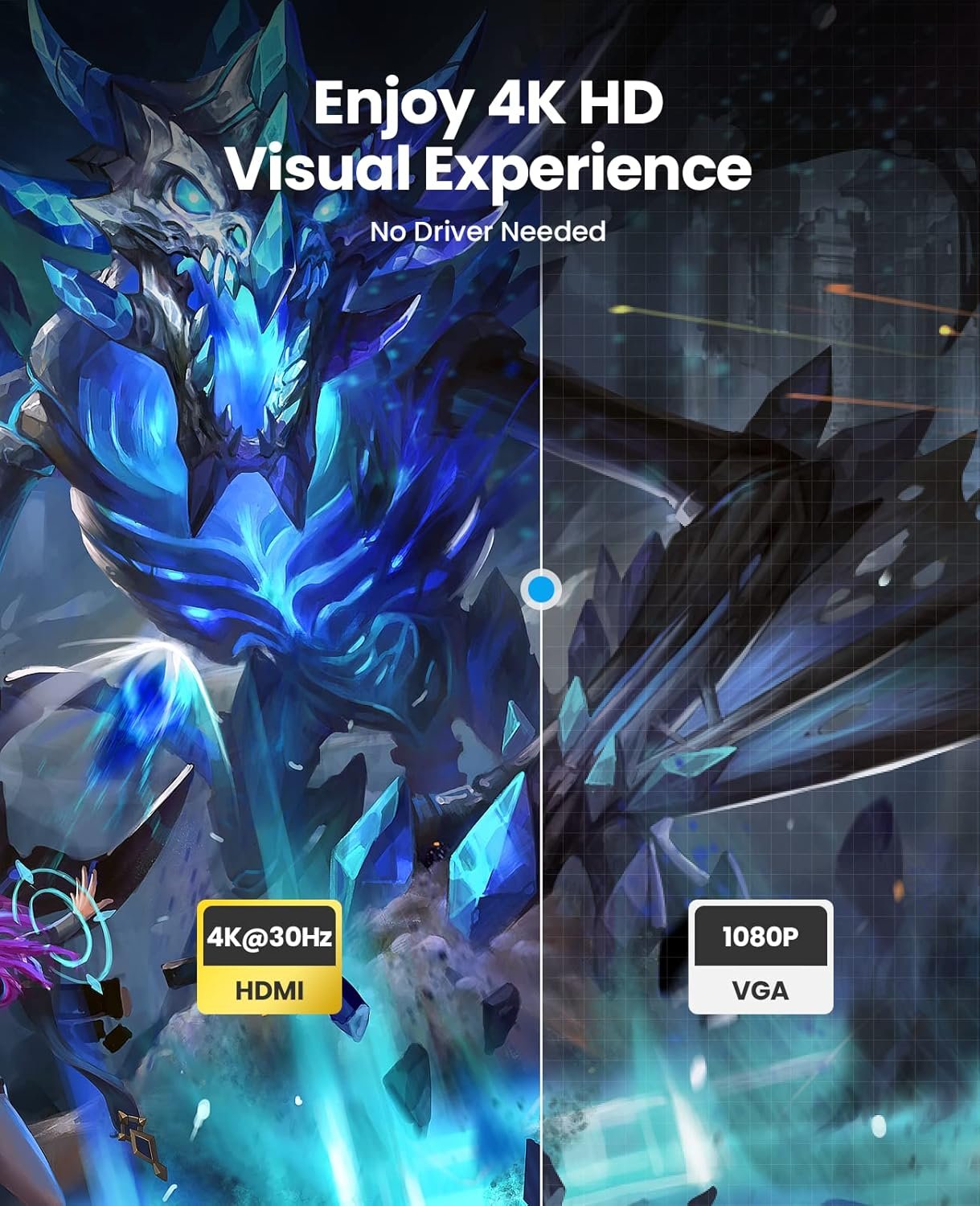 【USB C VGA HDMI Adapter】The HDMI and VGA output ports can work simultaneously,which allow you to connect device with USB Type C port to two external monitors via HDMI and VGA cable You can enjoy movies,games with your families on external ultra HD big screen. 【1080P VGA&4K HDMI Output】HDMI port max support 4K UHD 3840×2160@30Hz; VGA display in up to 1080P@60Hz Full HD. When two ports work simultaneously, the maximum resolution of the two is 1920 x 1080P@60Hz. Note: Extend mode, while vga and hdmi work at the same time,two monitors only show the same content. 【Wide Compatibility】This USB C to Dual HDMI Adapter works for USB-C Devices with DP Alt mode,such as MacBook Pro 2018/2017/2016 / MacBook Air 2018/iMac 2018/ Chromebook Pixel/ Dell XPS 13/15 ect.(Noted: Pls make sure that your host device supports DP Alt Mode). 【Easy to Use】Plug and Play Technology, no software or drivers needed, 2-IN-1 USB Type C 3.1 Adapter is an ideal solution for connecting USB-C devices (compatible with Thunderbolt 3) to HDMI or VGA equipped displays. 【What You Get】1* USB C VGA Adapter, 1* User Manual, 30-Day Money Back Guarantee. We will provide you professional customer service & technical support within 24-hours; Please feel free to contact us at: support@vilcome.com, if have any issues about this USB C HDMI Converter.
