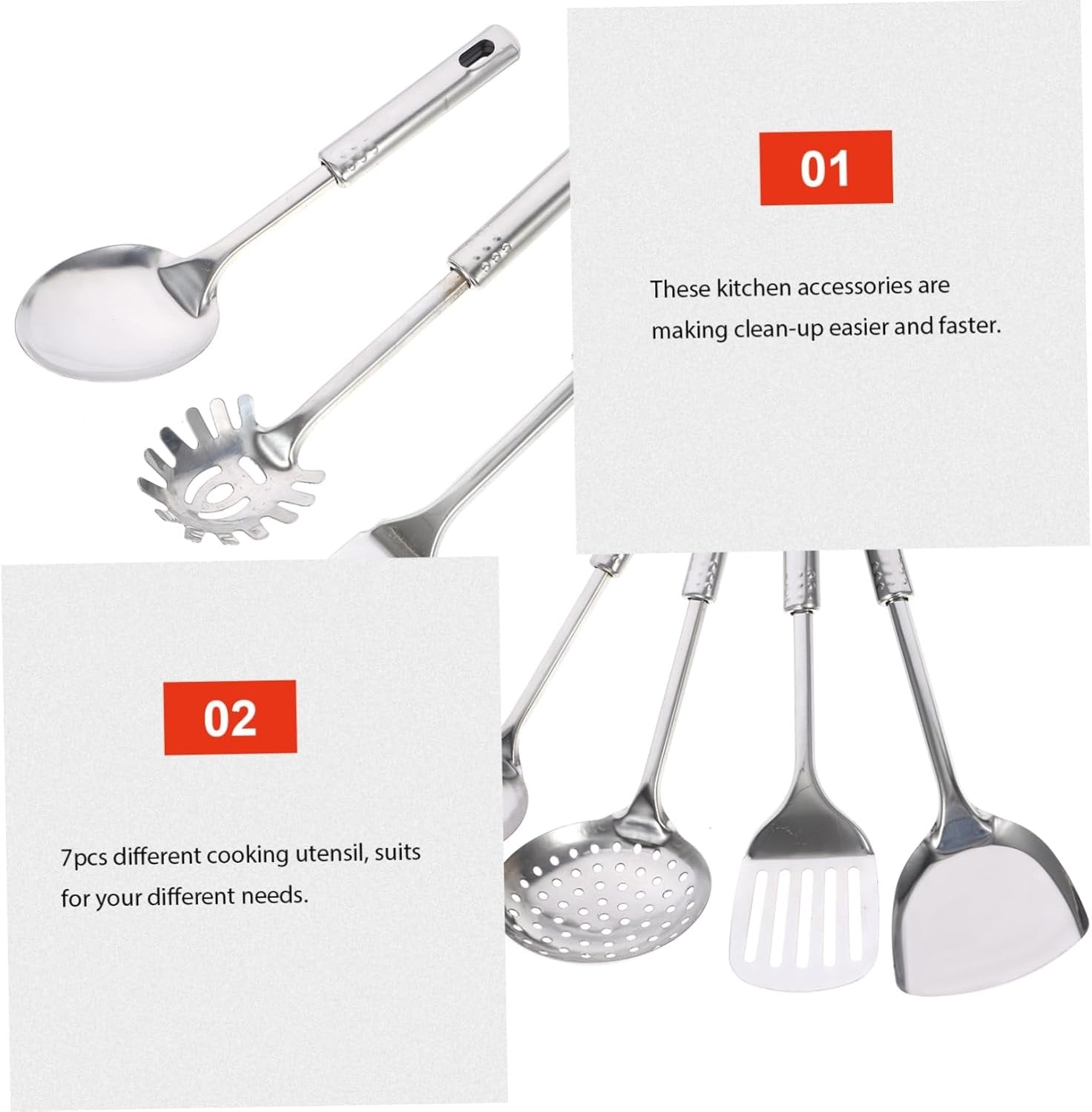 UTHCLO 7Pezzi Utensili Acciaio Inossidabile Gadget Per Cottura e Pentolame Include Schiumarola e Spatola Utensili Essenziali Per Cucina
