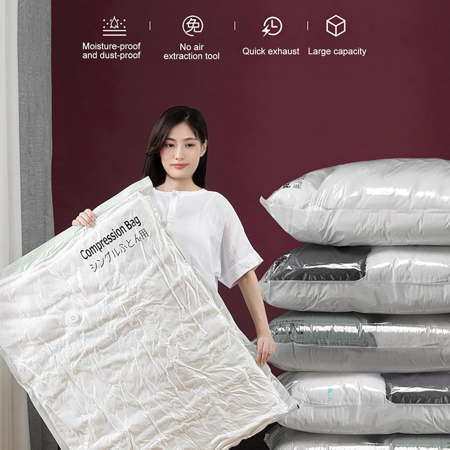 Vacuum Seal Bags - Vacuum Seal Bags For Clothing,Compression Garment Pack - Reusable Waterproof Garment Bags Moving House Seasonal Storage College Dorm Closet Organization