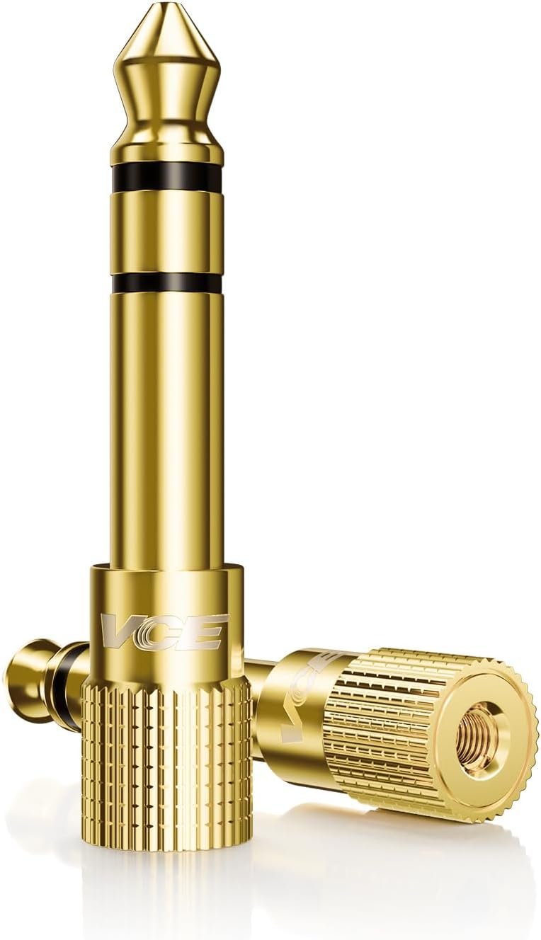 VCE 6.35mm (1/4 inch) Male to 3.5mm (1/8 inch) Female Stereo Audio Jack Adapter for Aux Cable, Guitar Amplifier, Headphone, 2 Pack