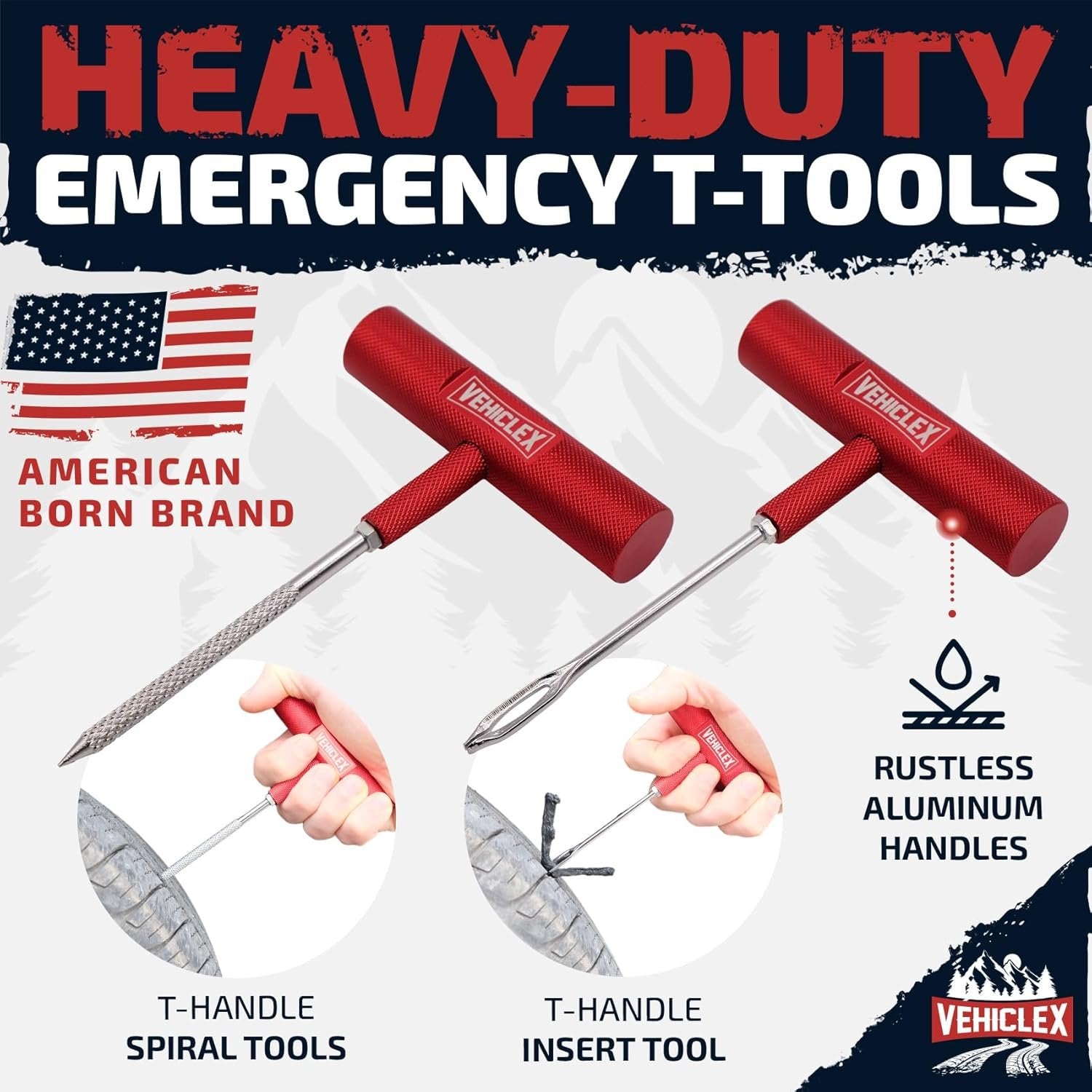 Vehiclex Tire Plug Kit with Aluminum Handled Tools, Plugs in Sturdy Zippered Bag - Emergency Kit for ATV, Car, Motorcycle, Truck