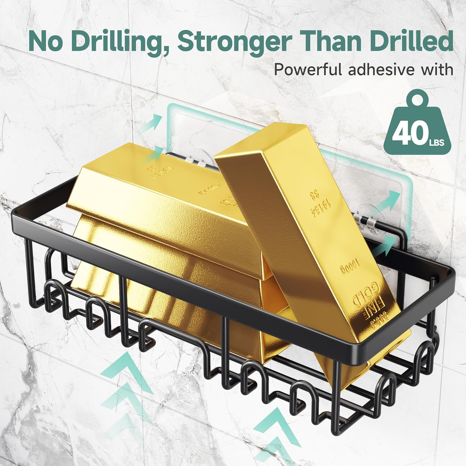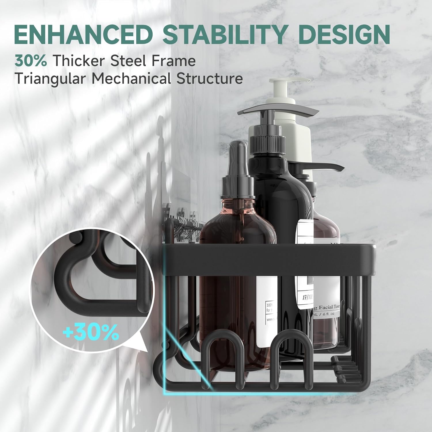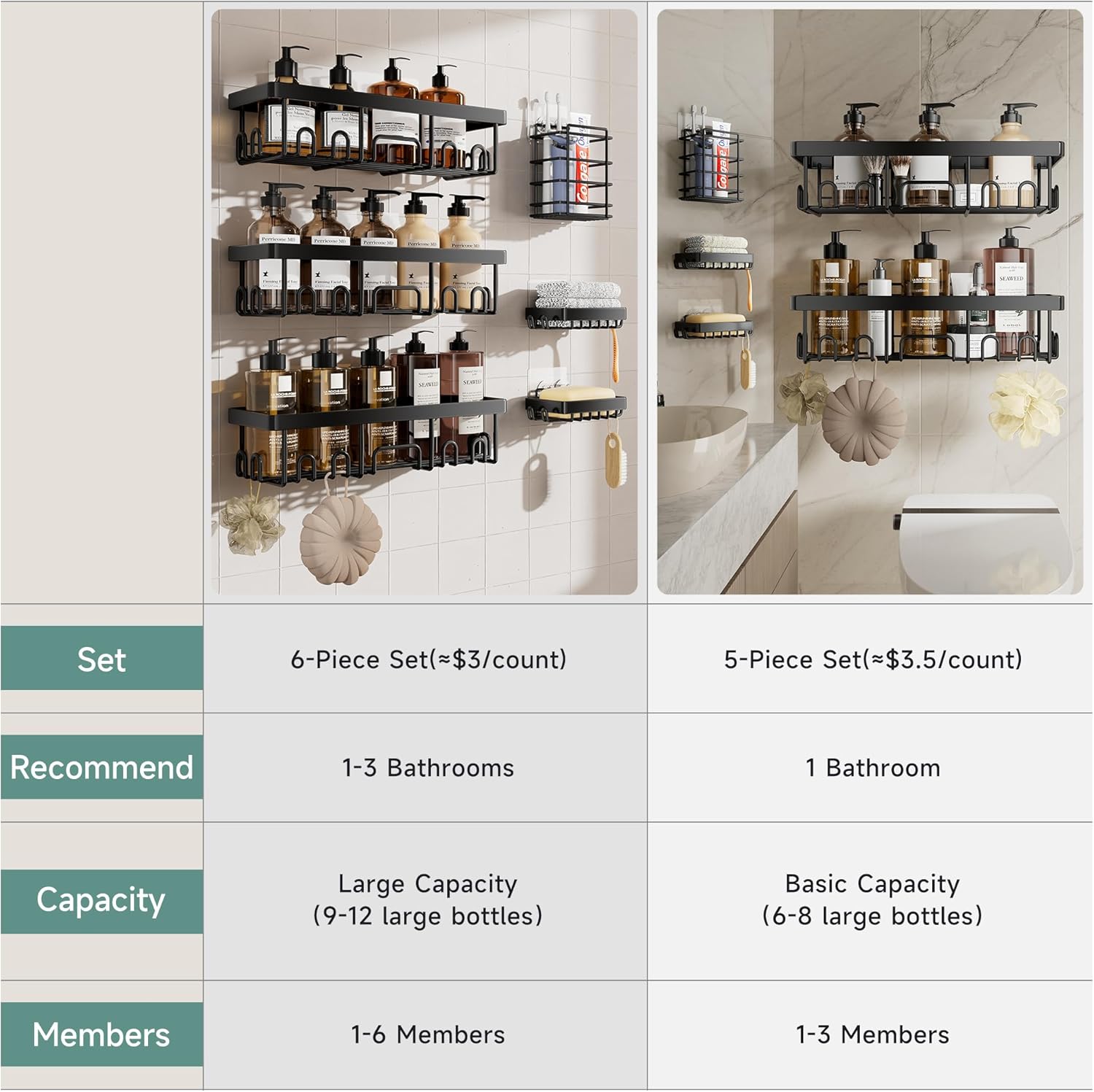 Veken Stainless Steel Shower Caddy 6-Pack, No Drilling & Rustproof, Waterproof Adhesive Shelves Rack with Soap Holder, Large Capacity Bathroom Organizers and Storage, Wall-Mounted Kitchen & Home Decor