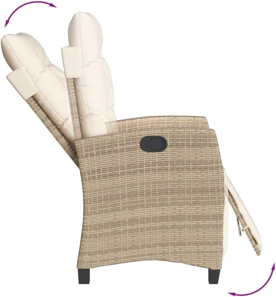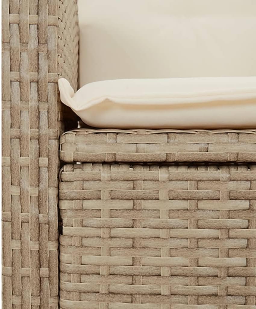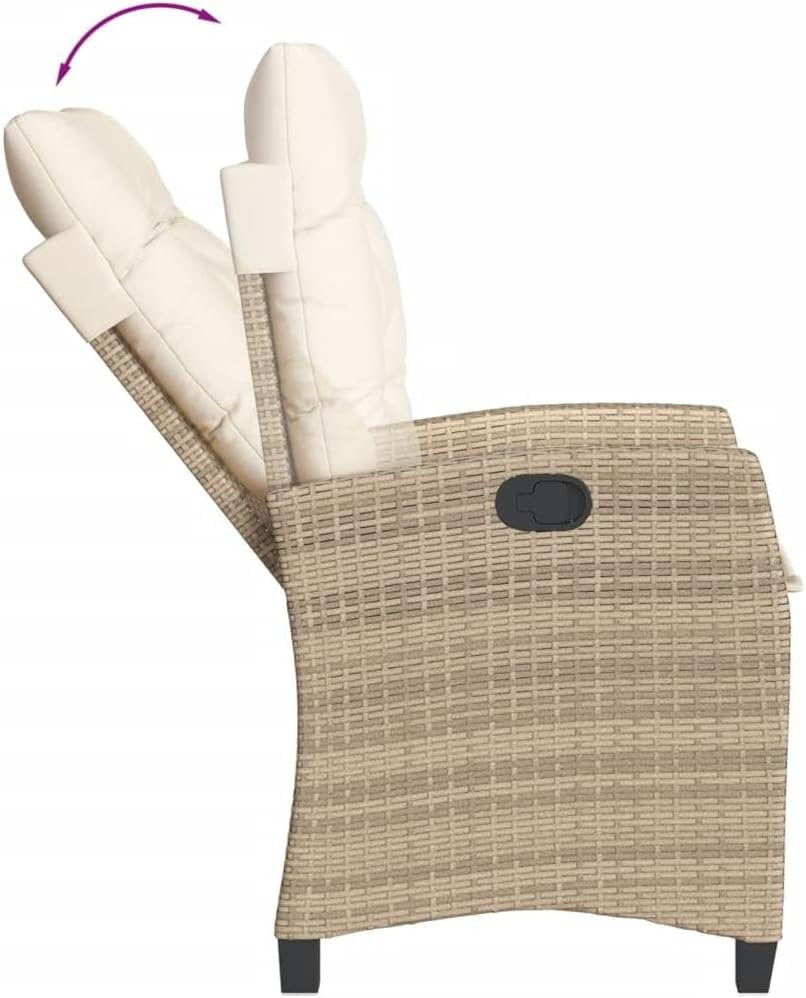 vidaXL 9-Piece Poly Rattan Garden Dining Set - Beige/Cream - Adjustable Recliners - Outdoor Patio/Deck/Backyard - Cushions & Tempered Glass Tabletop