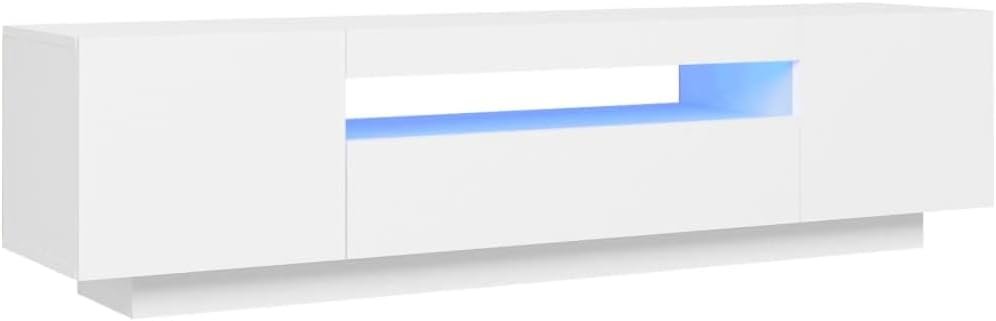 vidaXL TV Cabinet with LED Lights TV Stands HiFi Unit Entertainment Center Plasma Stereo Cabinet Bedroom Living Room Furniture White