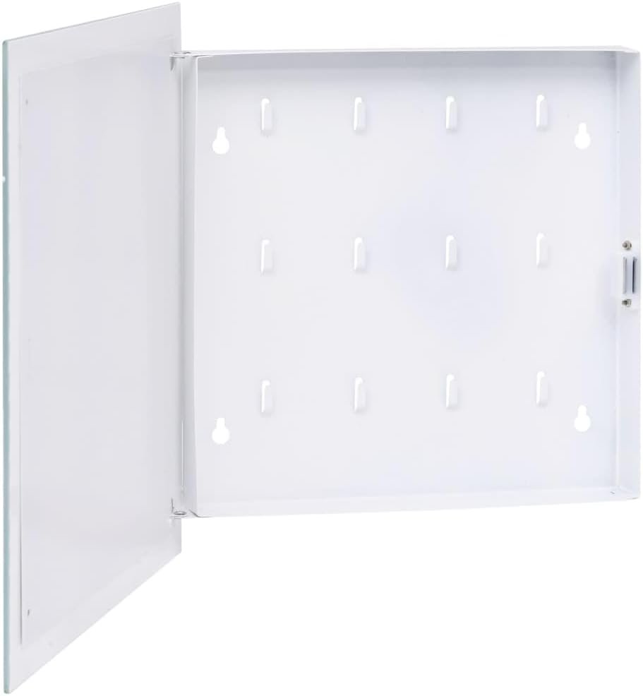 vidaXL White Key Box with Magnetic Board 35x35 cm - Steel and Tempered Glass, Wall-Mounted Storage Organizer for Home and Office