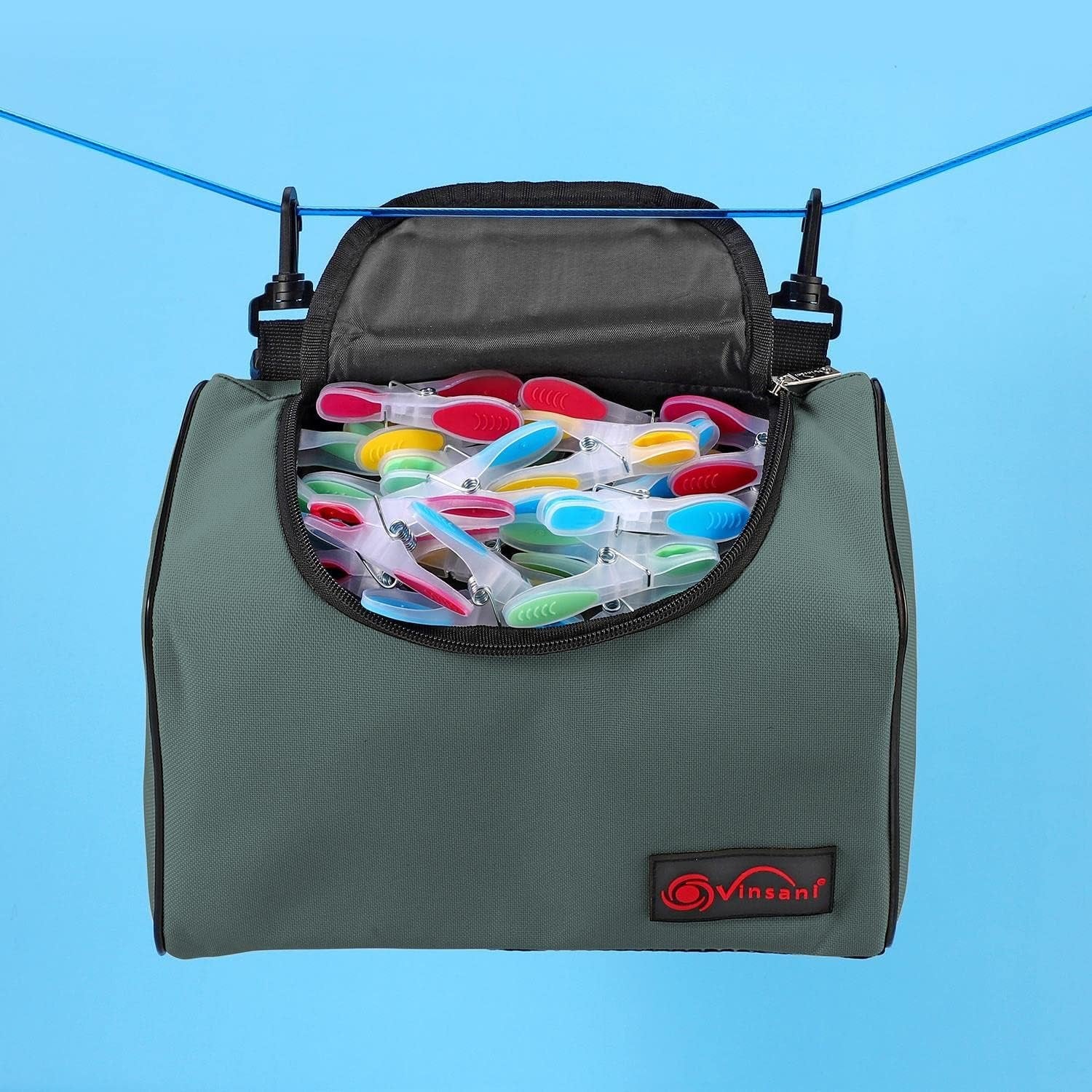 Vinsani Clothes Peg Bag Premium Zipped Waterproof Wearable Peg Storage Organiser Bag with Double Clips, Shoulder/Waist Strap Holds up to 300 Pegs Suitable for Indoor Outdoor Use – Grey