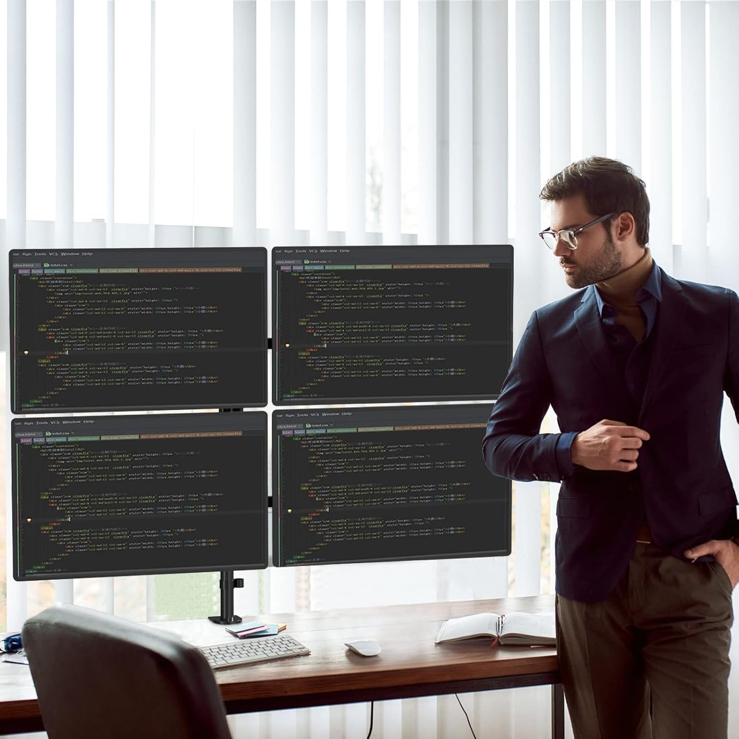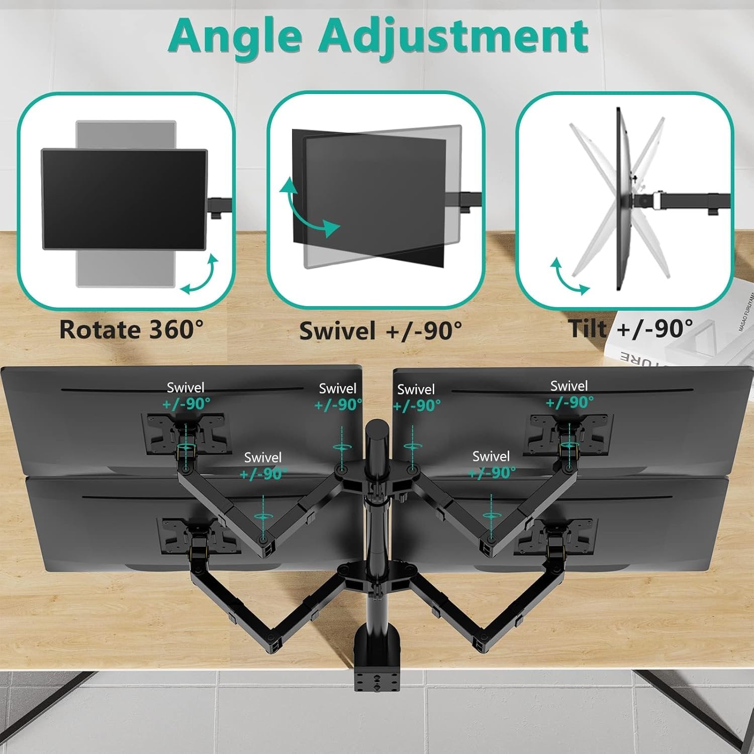 WALI Quad Monitor Desk Mount, 4 Monitor Stand Fits Heavy Duty Computer Screen up to 27 inch, Full Adjustable Monitor Arm Holds up to 22 lbs per Arm (M004), Black