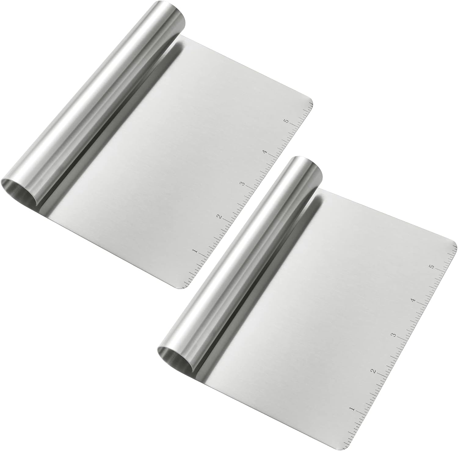 Wandeful 2 Pack Stainless Steel Food Scraper and Chopper Large Griddle Spatula Kitchen Tool Gadget, Multi-Purpose Kitchen Utensil for Dough, Cake, Pizza