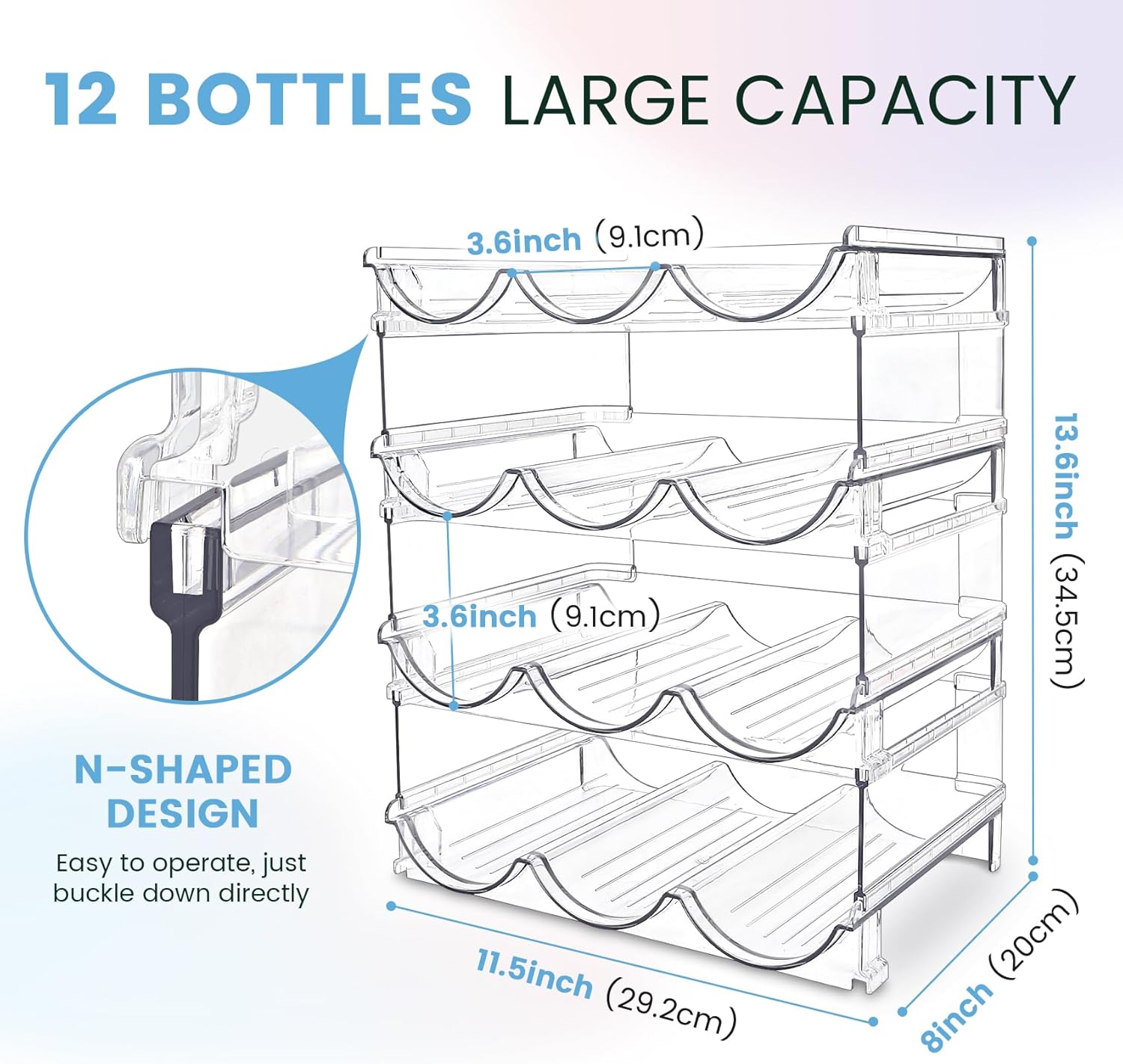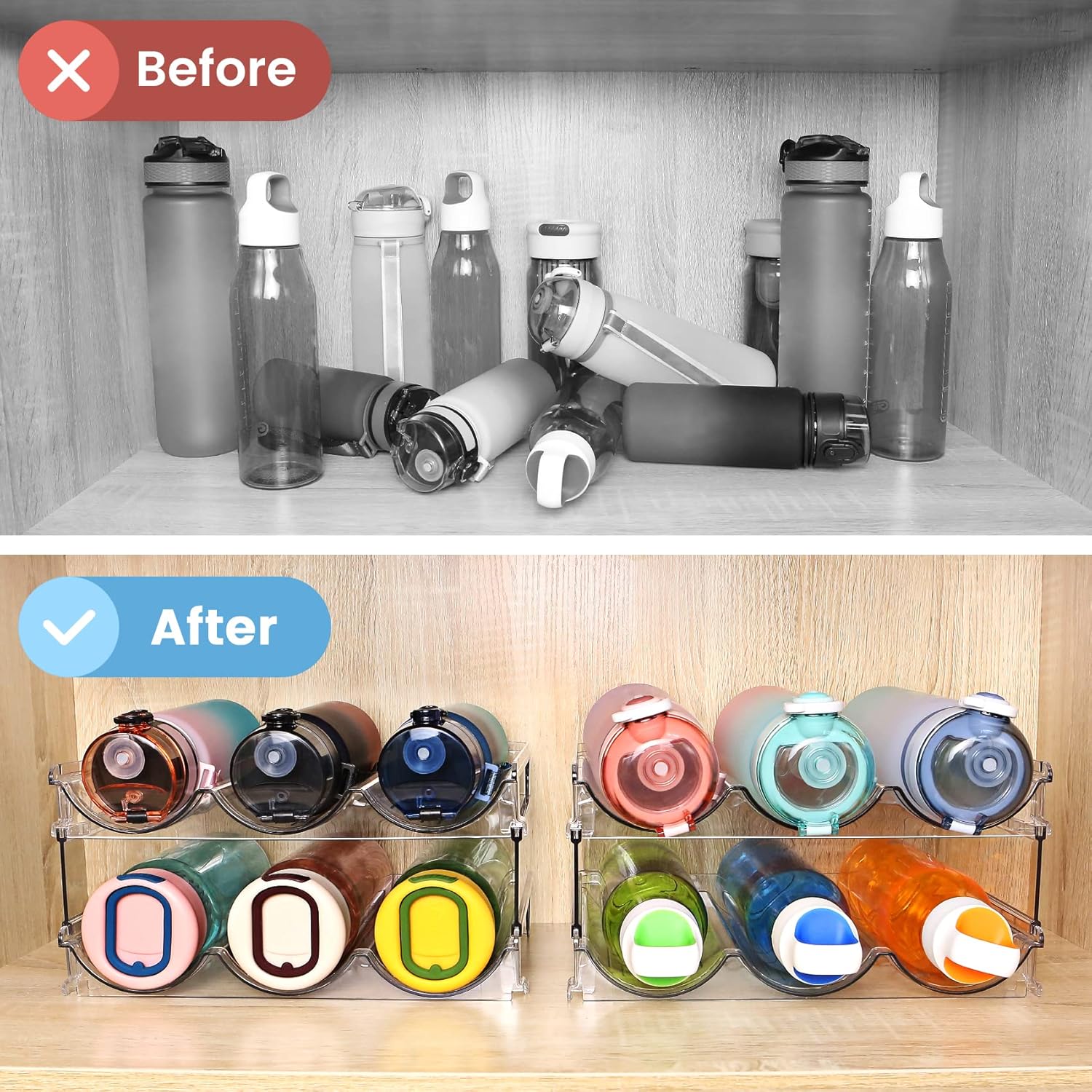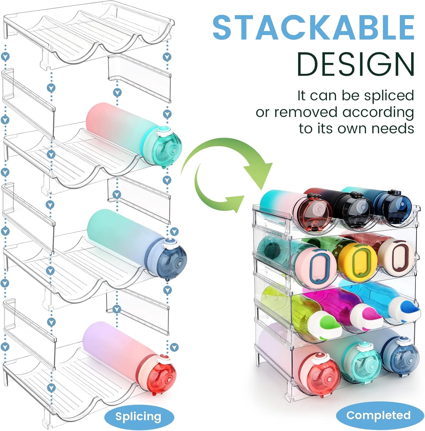 Water Bottle Organizer for Cabinet, 4 Pack Water Bottle Organization and Storage Shelf, Plastic Water Bottle Holder Rack for Fridge, Kitchen, Desktop