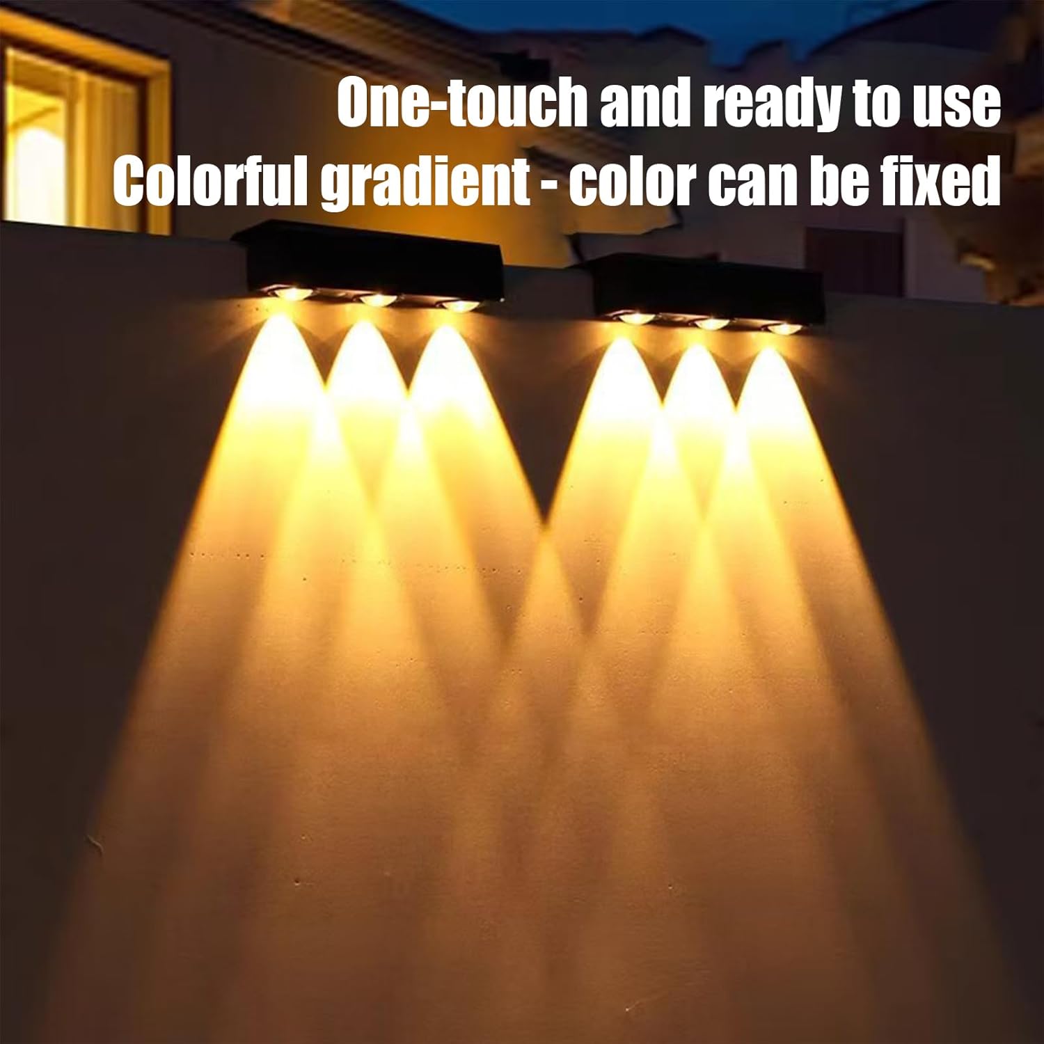 Waterproof and weather-resistant design endures rain snow and heat all year long: crafted with housing and sealed components these fence lights maintain functionality and appearance through changing seasons ideal for outdoor environments Easy wireless installation requires no wiring or electrical expertise for setup: each unit includes mounting hardware and is powered entirely by sunlight making it a addition to fences decks porches garages or poolside areas with minimal effort Soft warm glow adds decorative charm while improving visibility and security: these low-profile lights blend seamlessly with outdoor decor providing attractive illumination for guests and added peace of mind without harsh brightness or glare Smart light sensors optimize power use by charging during the day and lighting automatically at night: this self-sustaining system consistent performance ideal for patios paths backyards front yards and any low-light outdoor space