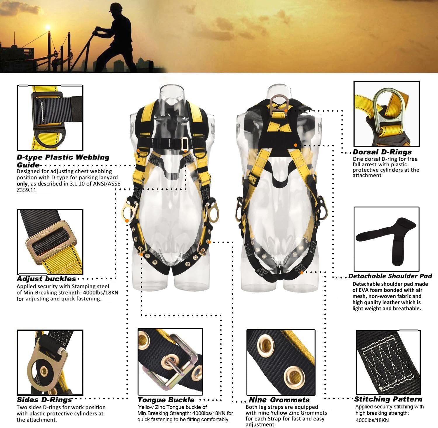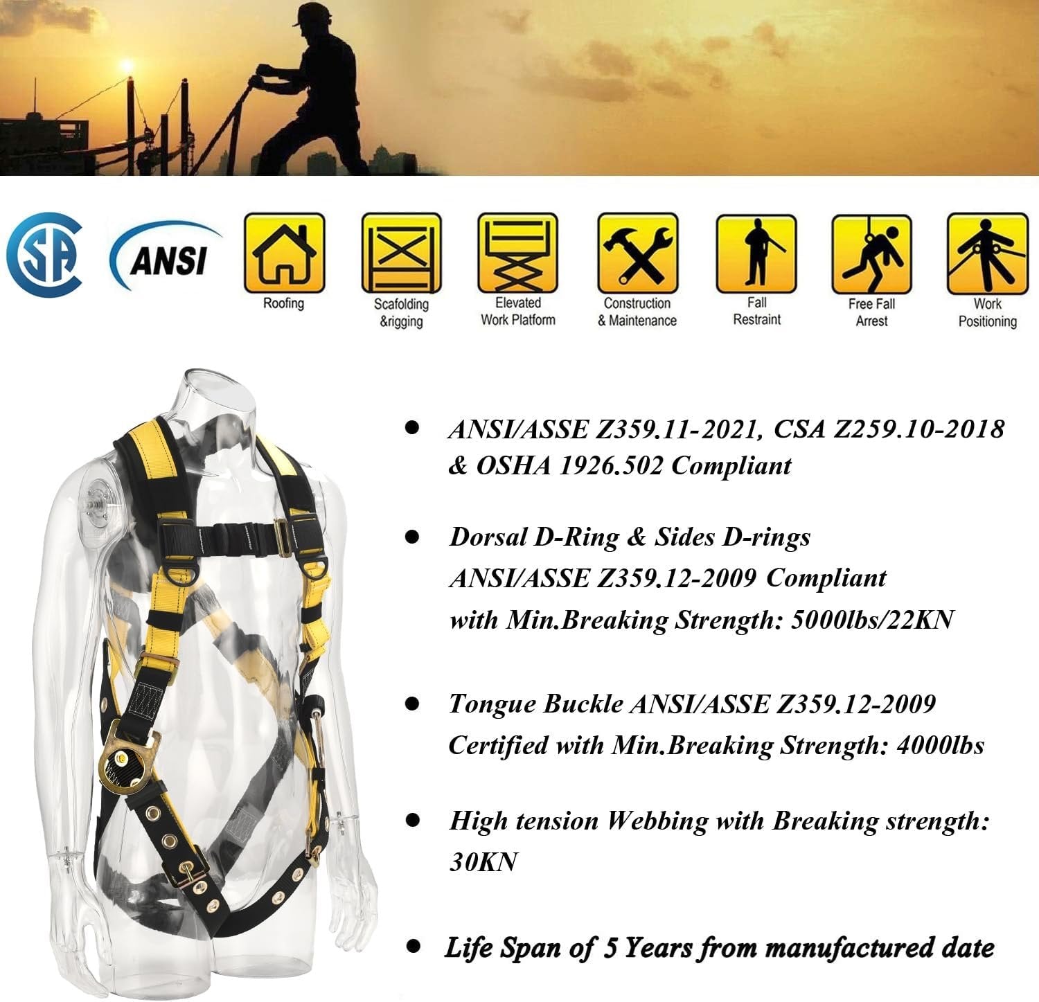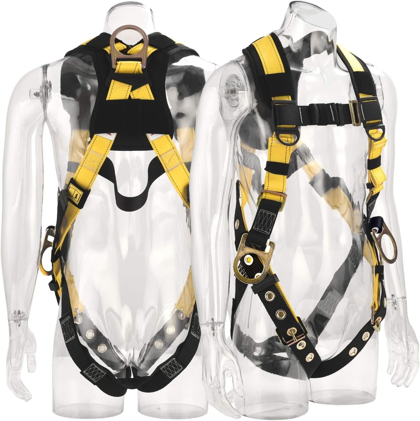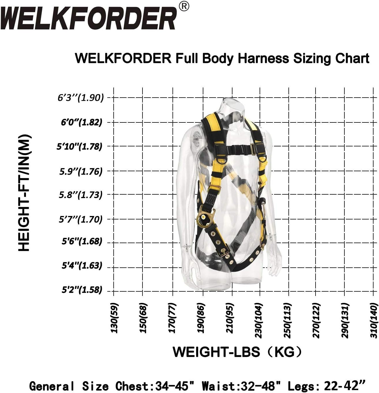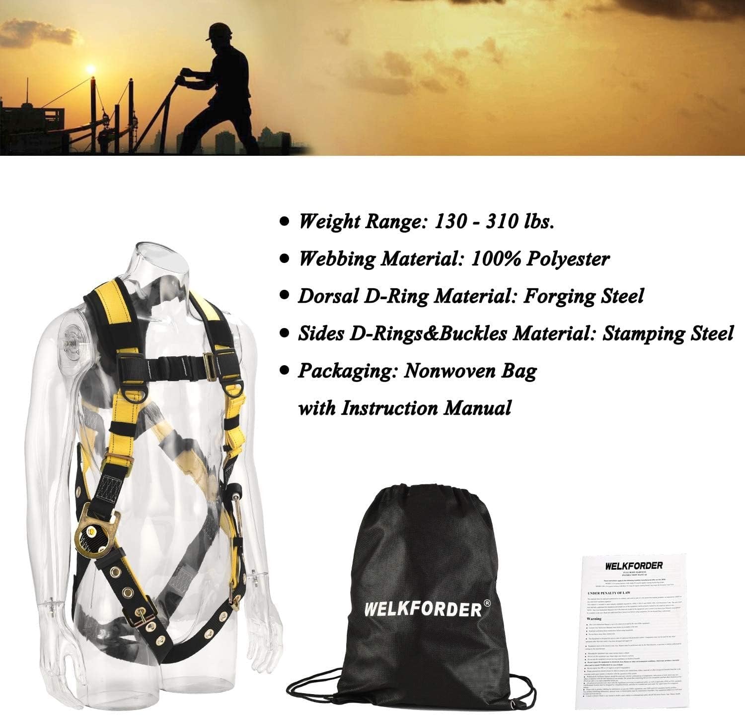 WELKFORDER 3D-Rings Industrial Fall Protection Safety Harness With Leg Tongue Buckles | Shoulder Pad Support ANSI&CSA Compliant Full Body Personal Protection Equipment