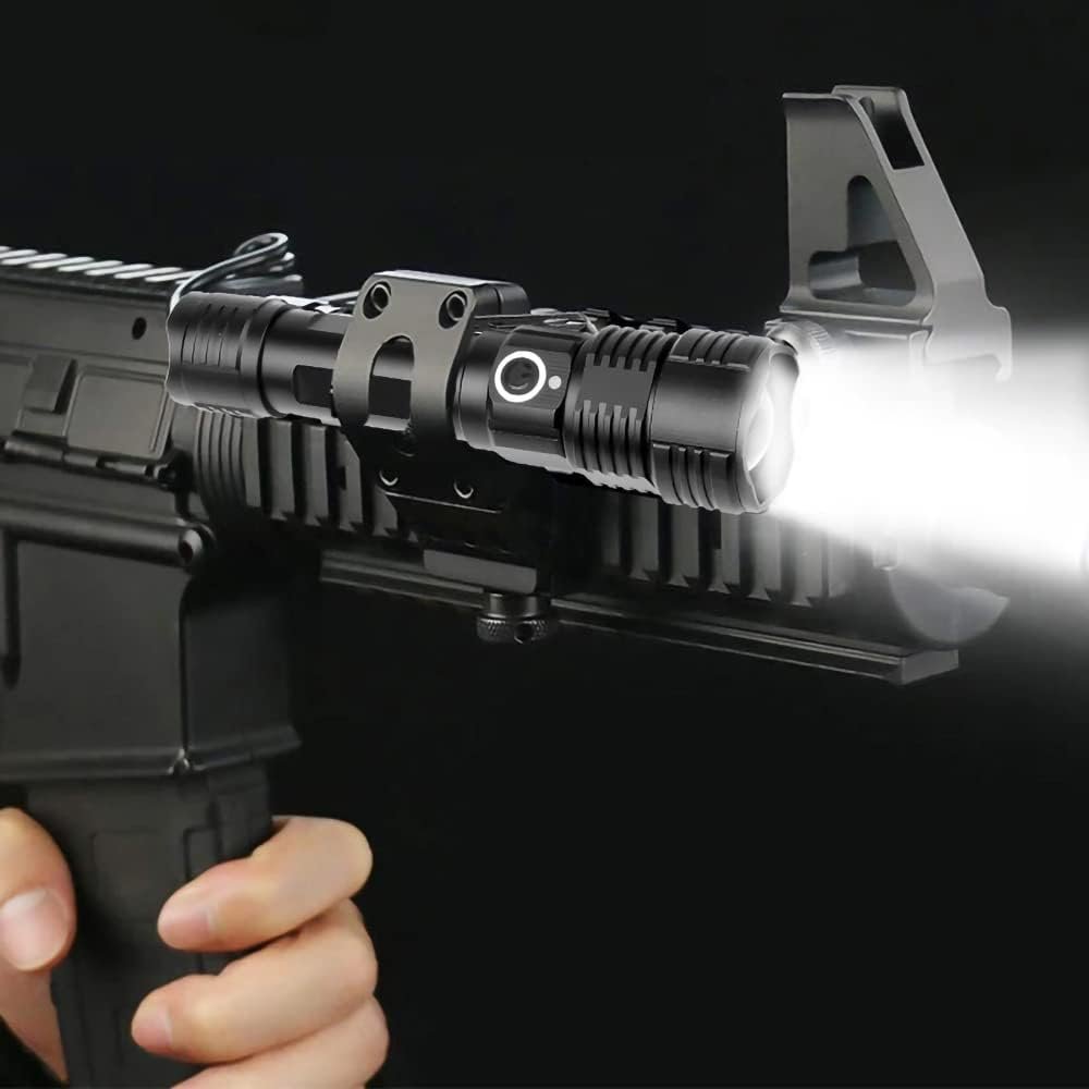 【4 colors light LED flashlight】Powerful Led flashlight have 4 gears: Green light, White light, Purple light, Red light. Color 4 in 1, press switch to change light color, multi-purpose LED flashlight 【White Light Flashlight】Super Bright white light flashlight brightness can reach 1000 lumens, beam distance up to 100~200 meters. Suitable for home lighting, camping, hiking, biking, walking, dog walking 【Red Green Light Flashlight】 Human's eyes are most sensitive to red and green range of light, but animals are not spooked by red LED or green LED flashlight. Tactical led flashlight is very helpful to find animals in the dark, like hogs, coyotes, fox 【Purple Light flashlight】UV Light flashlight can reveal the stains or fluids which are invisible to the naked eyes on the floor or even grass. Such as detecting counterfeit documents, money verification, amber and jewelry detection, pet urine and stain detection 【Zoomable & Rechargeable】1000 lumens torch can generate brilliant large area floodlight or long range spotlight by telescopic zoom. Waterproof led flashlight comes with USB cable, easily charge by USB device.