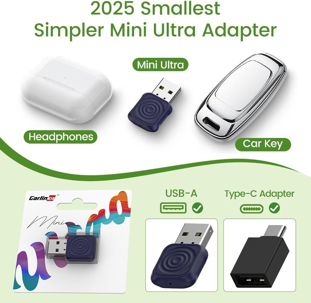 Wireless CarPlay Adapter CarlinKit Mini Ultra – 2 in 1 for Android Auto, Plug & Play Wired to Wireless Converter, Fastest Connection for Factory OEM Car 2019+ Models
